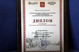 За победу в Первом всероссийском конкурсе «Лучшее муниципальное образование России в сфере управления собственными финансами» боролись 183 городских округа из 56 субъектов Российской Федерации. Полученные материалы изучала конкурсная комиссия, в которую вошли директор Департамента межбюджетных отношений Минфина России А.Юрин, член комитета Государственной думы по бюджету и налогам Н.Максимова, другие именитые экономисты и финансисты. Калининград признан победителем в номинации «За высокое качество исполнения бюджета».