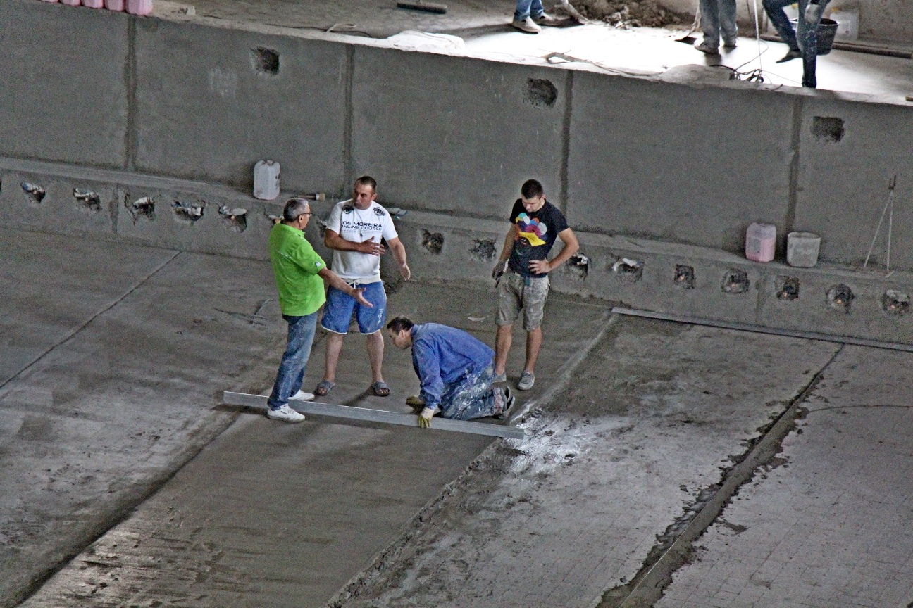 На этой неделе завершаются работы по выравниванию и одновременной гидроизоляции ванны, затем предстоит её гидротехнические испытания, после чего приступят к укладке плитки, которая уже отгружена поставщиком. Кроме приятных светлых тонов, новая плитка обладает и бактерицидными свойствами. Параллельно продолжаются работы вокруг чаши, в раздевалках и в душевых.