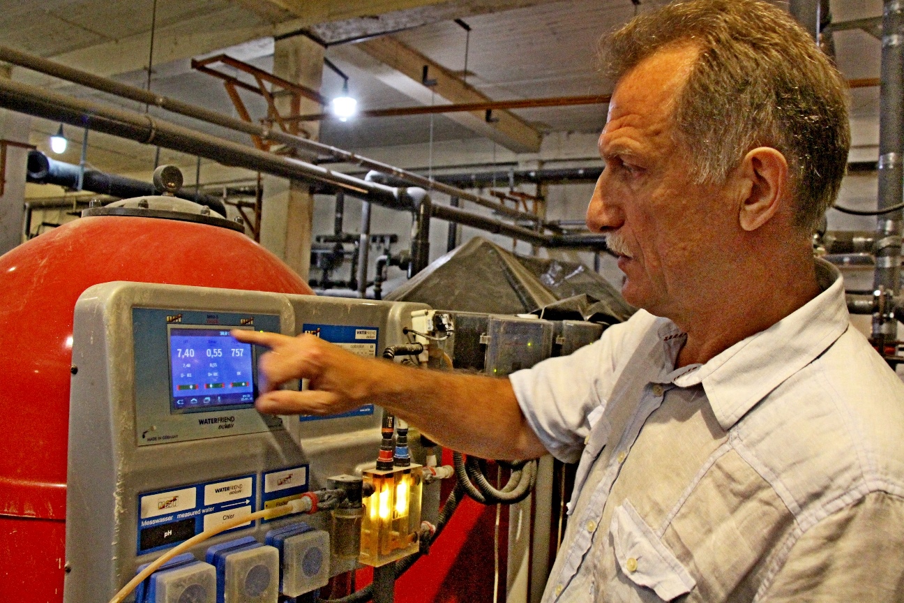 Сама система водоподготовки серьёзно обновлена в 2012 году, что позволило безукоризненно выполнять все нормы СанПиН, каждые восемь часов весь объём воды, это свыше 3000 кубометров, стопроцентно фильтруется с применением механического и химического обеззараживания и очистки воды, плюс обработка ультрафиолетом. От применения чистого хлора тогда же отказались, для обеззараживания применяется гипохлорид натрия, к тому же автоматика поддерживает заданные параметры - завсегдатаи бассейна это отмечают, так как отсутствует привычный запах «хлорки».