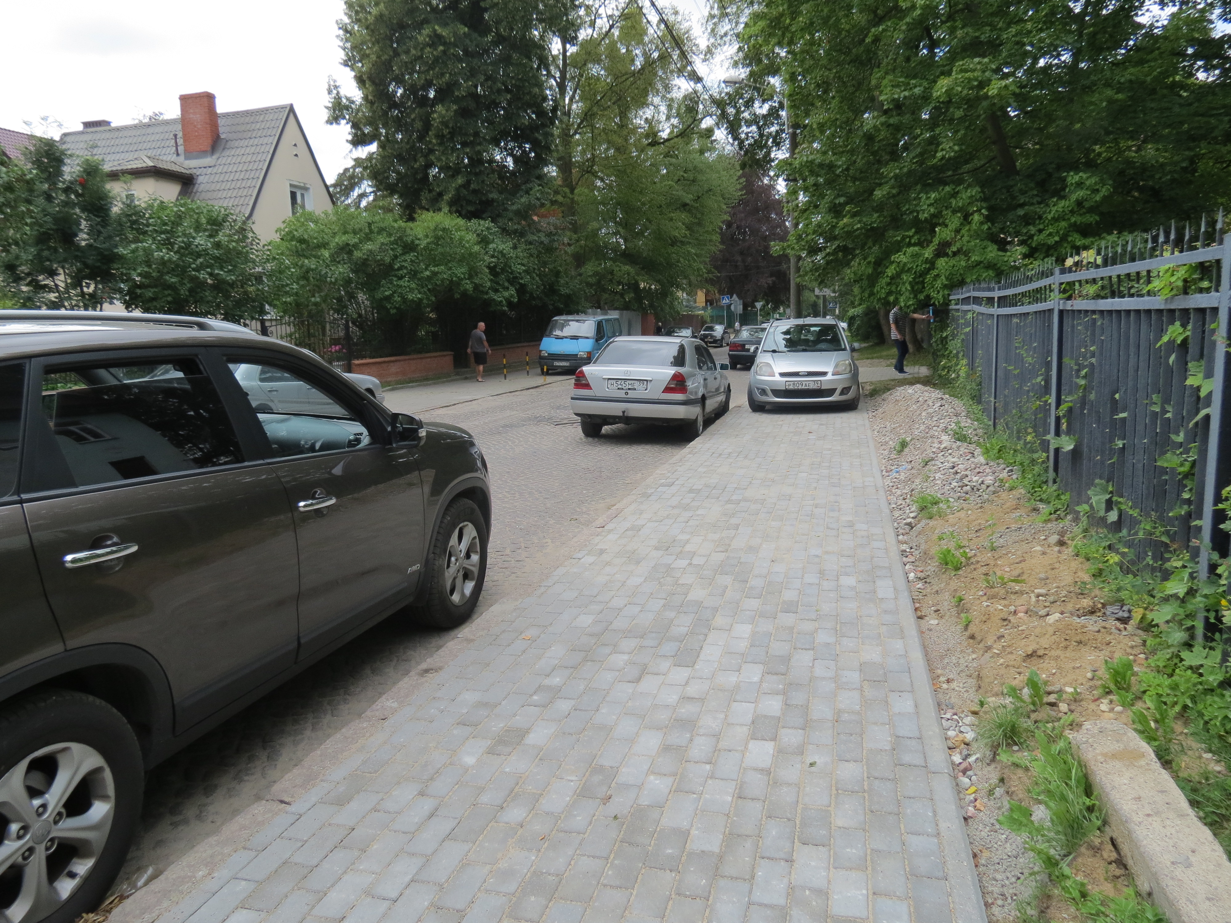 Ну ул. Тургенева тротуар отремонтирован рядом с социальным учреждением – «центр реабилитации и коррекции детей с ограниченными возможностями здоровья». Работы практически завершены, осталось уложить тактильную плитку и благоустроить обочины. Но здесь, прямо на отремонтированном тротуаре, уже начали парковаться автомобили, и лишь после замечаний со стороны сотрудников учреждения и городской администрации пешеходная зона была освобождена от личного транспорта.
