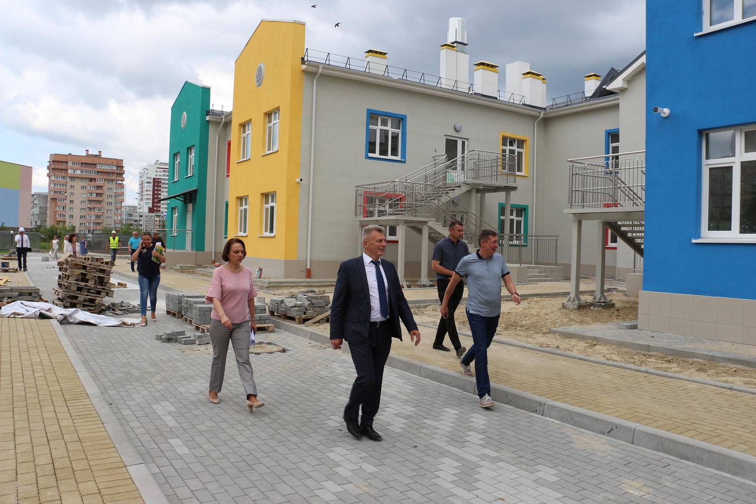 Строительство корпусов к действующим детским садам № 78 на ул. П. Морозова и № 57 на ул. Карамзина проинспектировал сегодня, 26 июля, первый заместитель главы администрации Калининграда Юрий Федяшов.