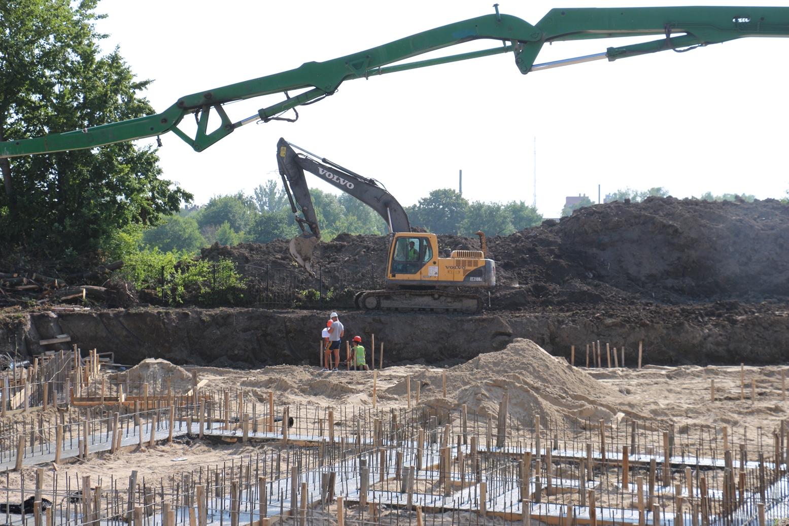 С предыдущего выездного совещания председателя КТРиС Артур Крупина, проведенного на этом объекте, прошло меньше недели. Но за это время подрядчик ООО «Запад-Строй» успел сделать очень многое. В прошлый раз проверяющие могли наблюдать за разработкой котлована, а сейчас строители ведут работы по заливке бетонного ростверка.