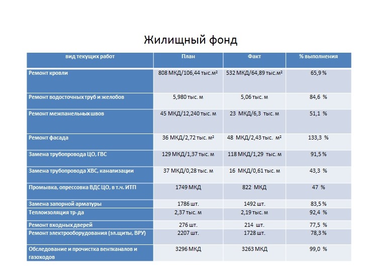 По состоянию на 1 августа промыто и опрессовано 822 МКД (47% от запланированных МКД). Работы продолжаются.