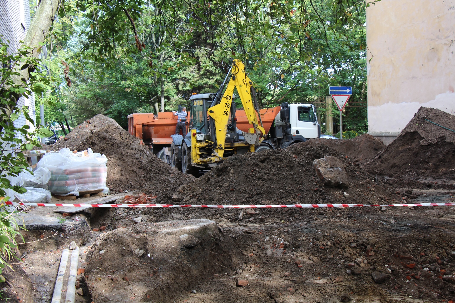 Ремонт двора, как любой ремонт, вносит в повседневную жизнь определённые неудобства, но результаты уже просматриваются – двор обретает чёткие контуры, вдоль дома пролегли тротуар и проезд. Алексей Силанов обращает внимание на покосившиеся опоры для сушки белья. Они немного в стороне от эпицентра ремонта, но явно будут портить вид после его завершения.