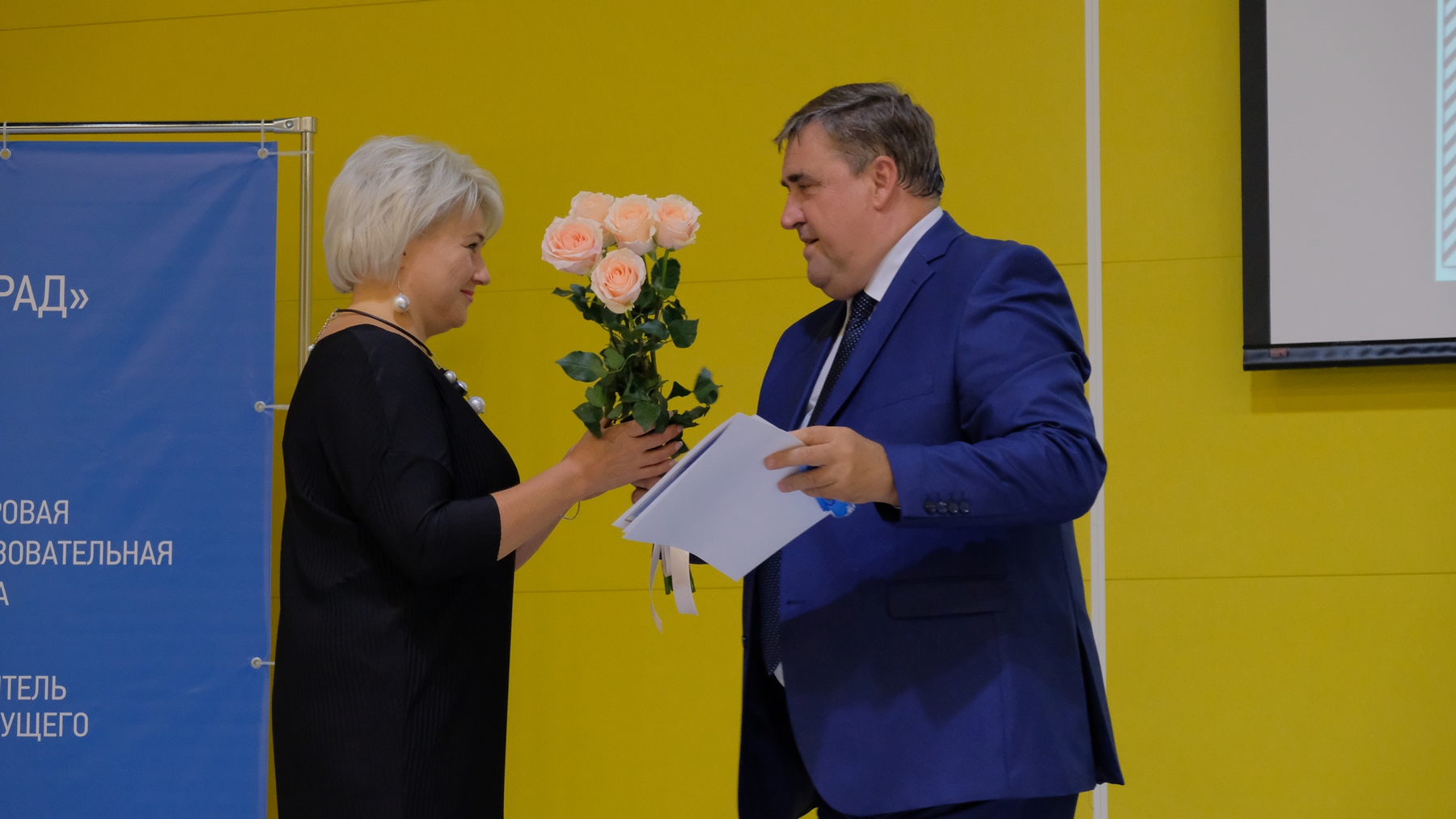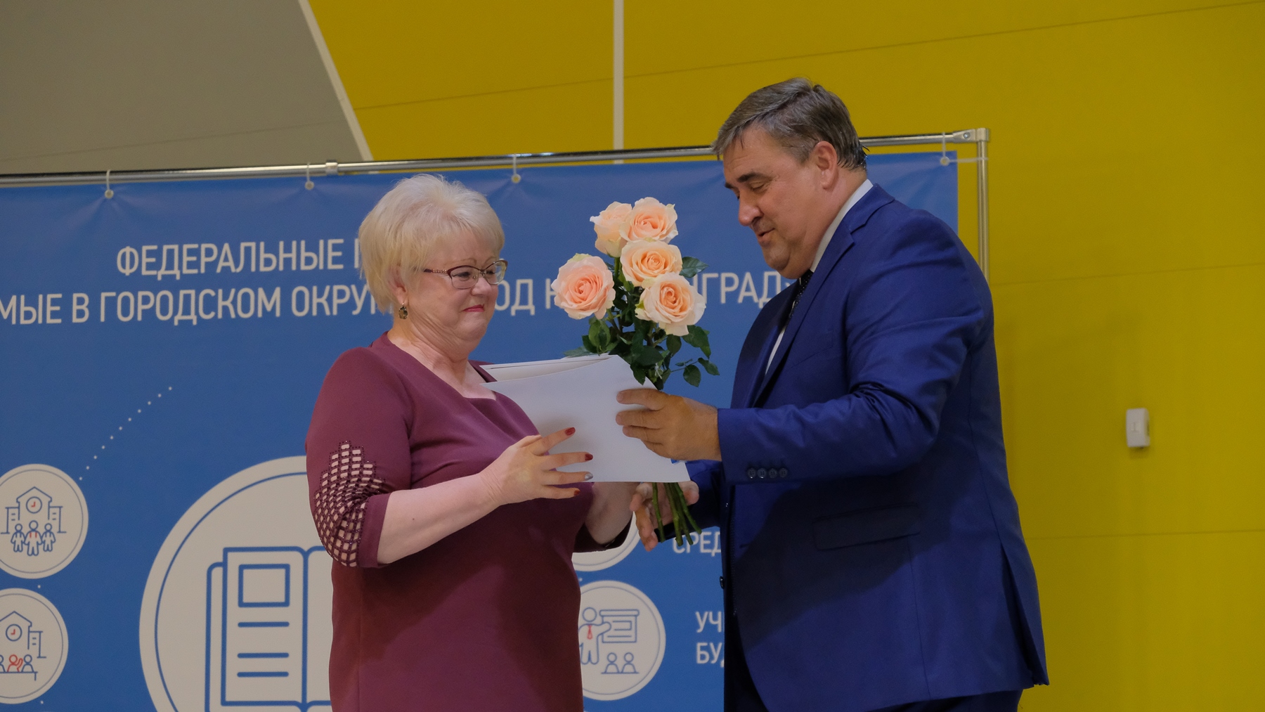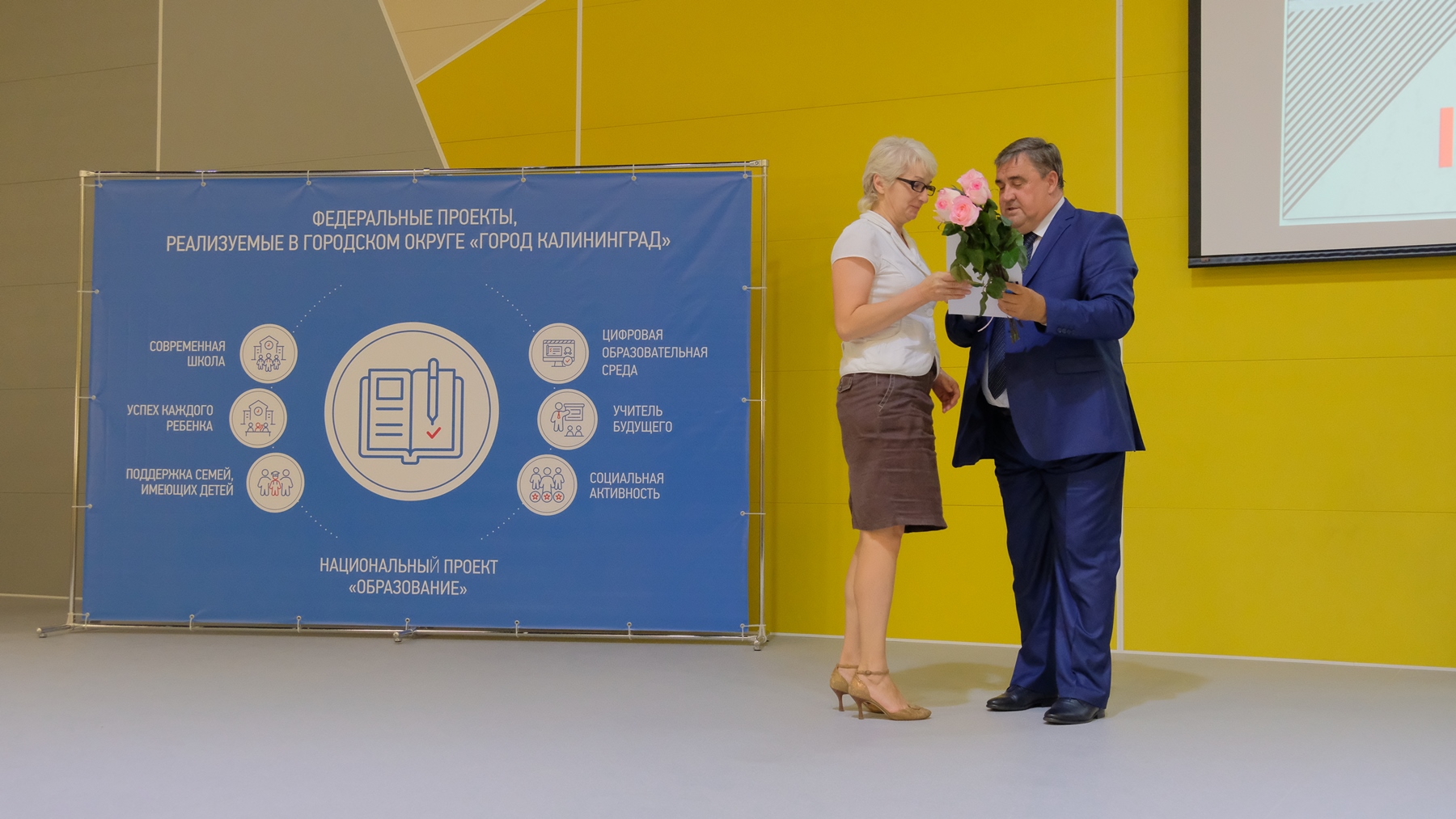 С докладом о национальных проектах, реализуемых на территории Калининграда, выступил глава города Алексей Силанов. Также Алексей Николаевич вручил лучшим педагогам Благодарности и цветы.
