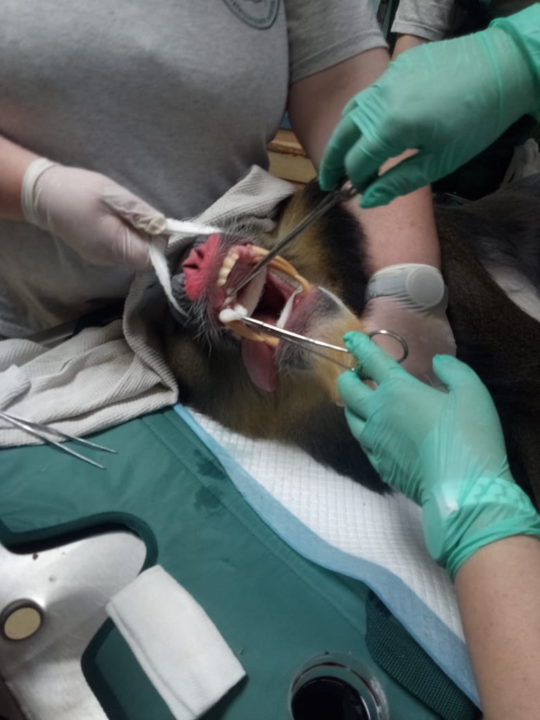 Во время внешнего осмотра мандрила по кличке Мумба сотрудники зоосада обнаружили наросты в ротовой полости. Для более тщательного обследования было принято решение обездвижить животное. В результате Мумбе поставили диагноз папилломатоз. Хирургическим путем доброкачественные опухолевидные образования были успешно удалены 22 августа. Операцию проводил ветеринарный врач и зооспециалисты. Сейчас у животного не наблюдается проблем с аппетитом и физическим состоянием.