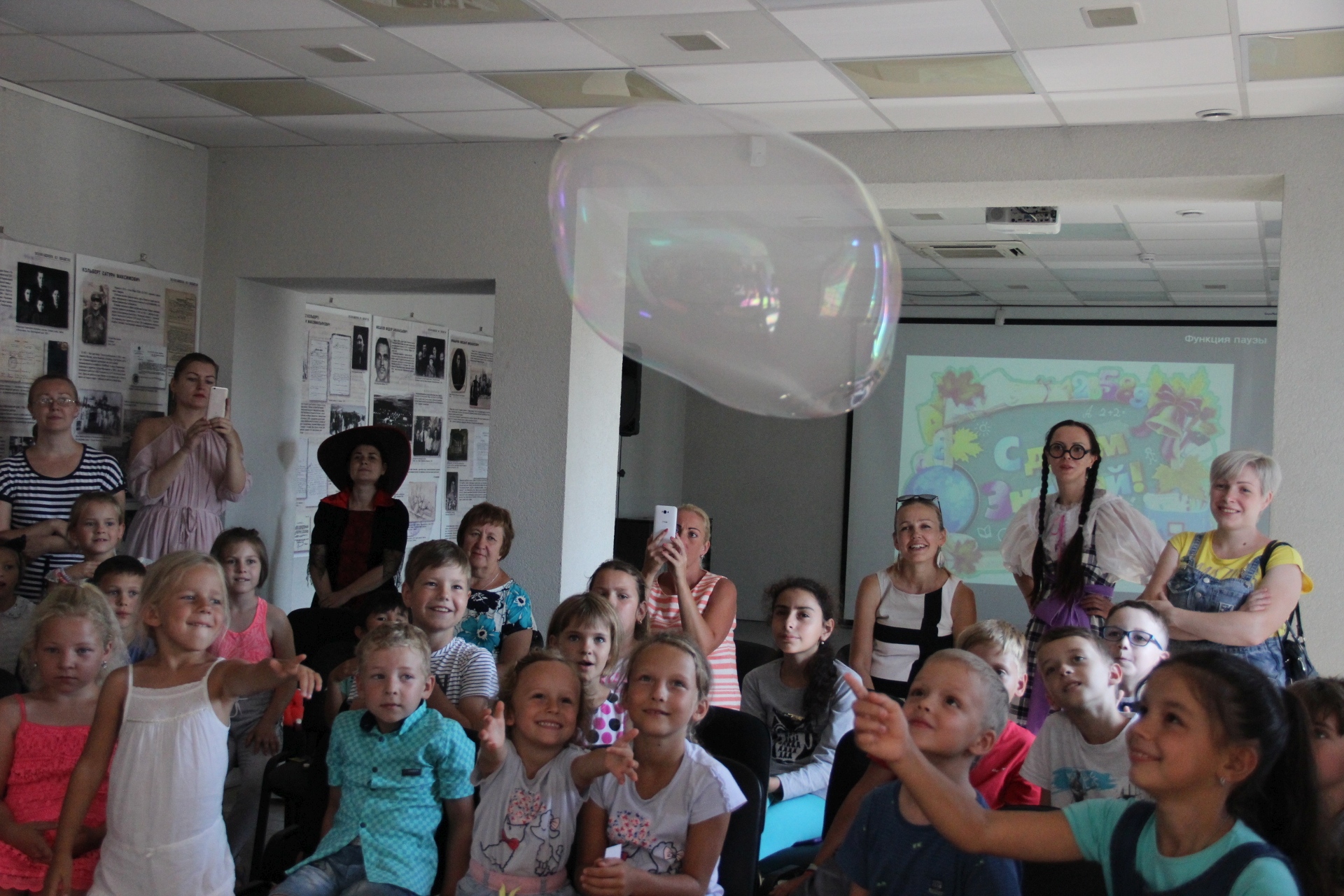 Накануне 1 сентября библиотекари и друзья «Чеховки» подарили детям Калининграда настоящий праздник. Будущие первоклассники и учащиеся начальных классов соревновались в кричалках с Пеппи Длинныйчулок, отгадывали задачки на смекалку, выполняли задания на ловкость и скорость. После веселой разминки, волшебница и ученый Музея занимательных наук «ЭйнштейниУм» познакомили ребят с «волшебством», которое на поверку оказалось оптическими иллюзиями и химическими реакциями, подчиняющимися строгим законами физики и химии. Продолжила удивлять школьников Ксения Хорошилова. Пузыри наполненные дымом и огнём, гигантские мыльные шлейфы и невероятные трюки заворожили ребят. Каждый участник смог оказаться внутри мыльного скафандра. В завершение программы, Пеппи Длинныйчулок увлекла всех танцевальным флешмобом.