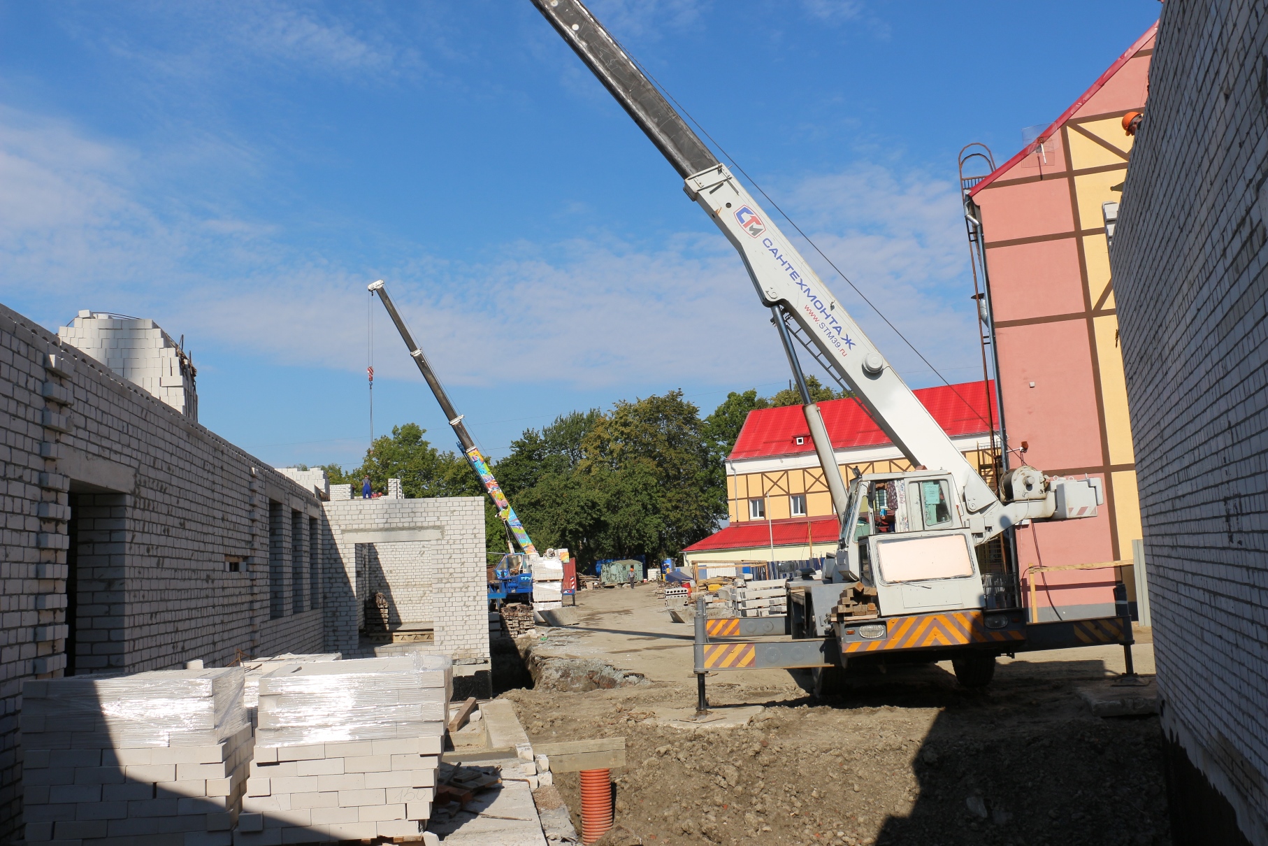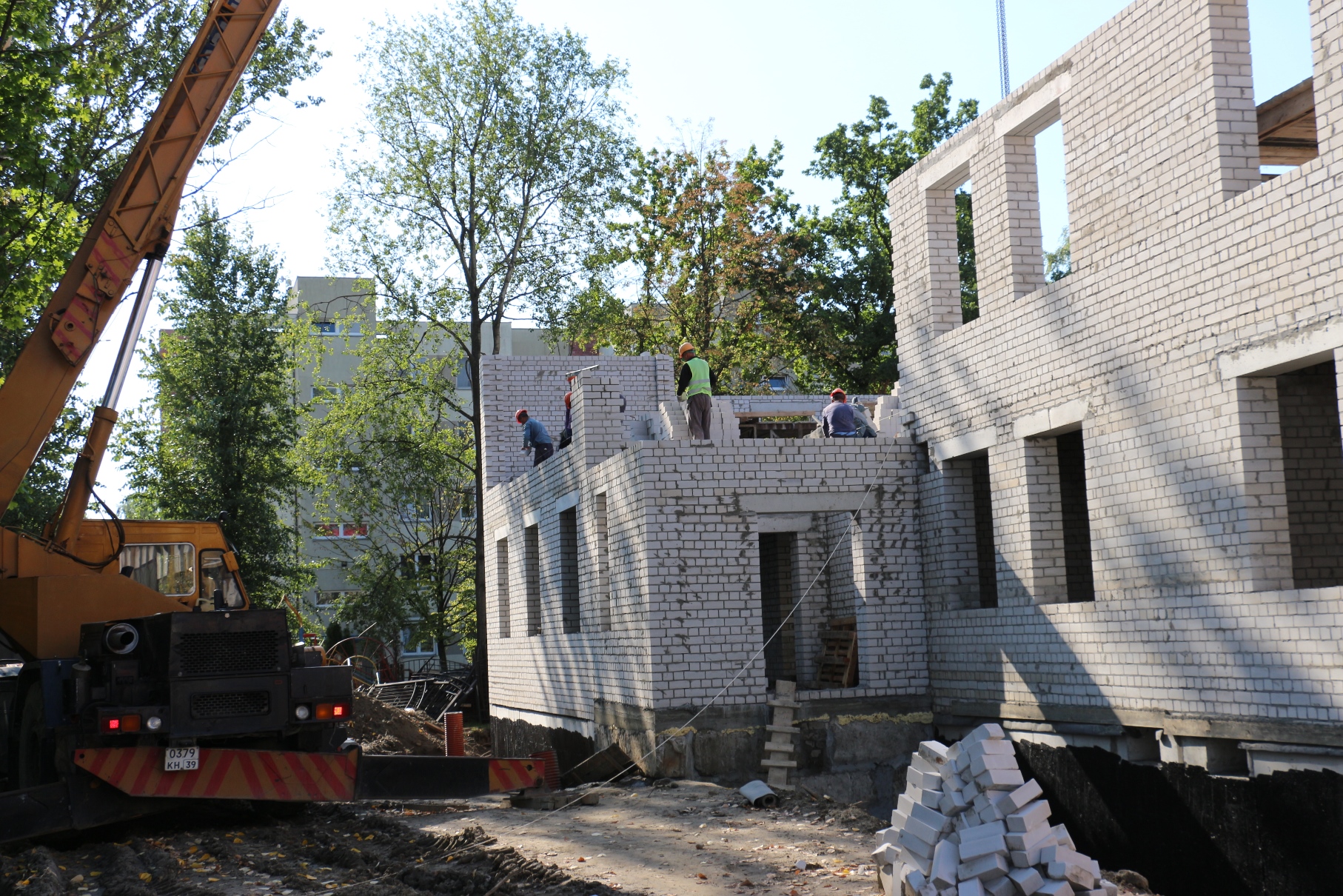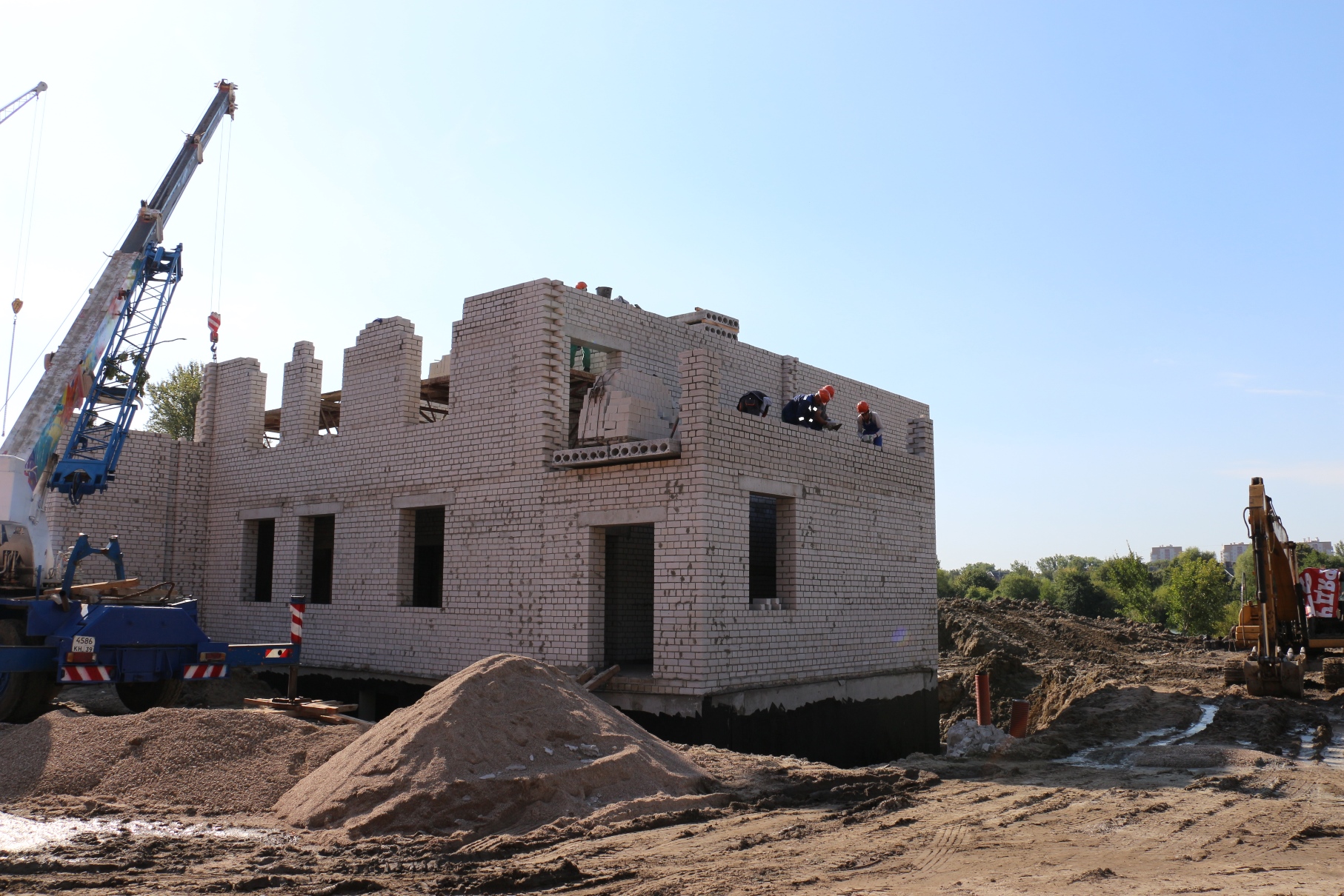 С начала строительства нового корпуса на ул. Красной подрядчик успел сделать очень многое. Сейчас строители ведут работы по устройству монолитных стен и колон, монтаж перекрытий, осуществляют кирпичную кладку стен и перегородок на уровне второго этажа, гидроизоляцию стен подвалов.