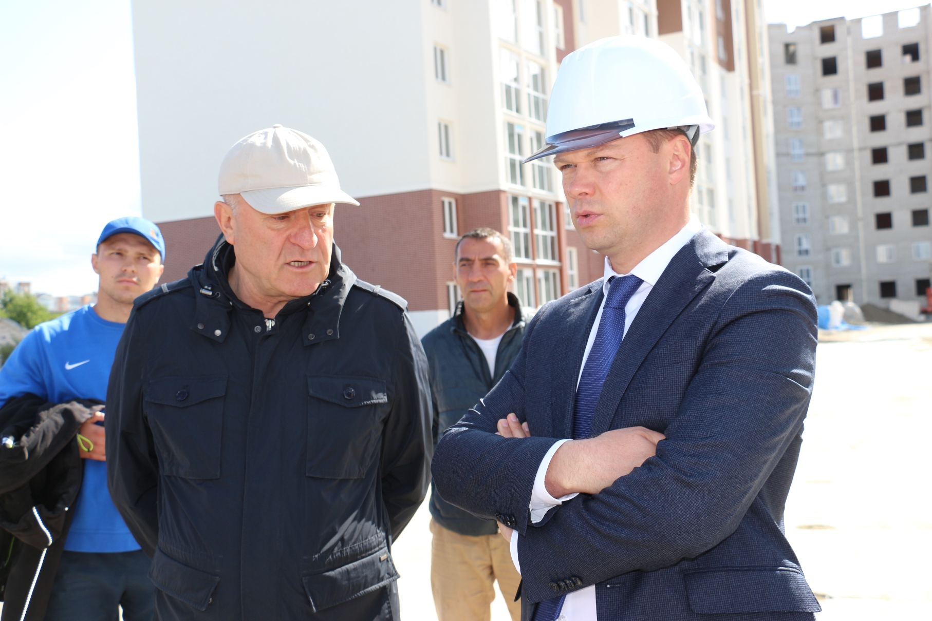 Ход работ на строительстве многоквартирных домов по ул. Жукова, в которых запланированы квартиры для дольщиков компаний «Калининграджилстрой» и «Трест №1», проинспектировал сегодня, 6 сентября, председатель КТРиС Артур Крупин.