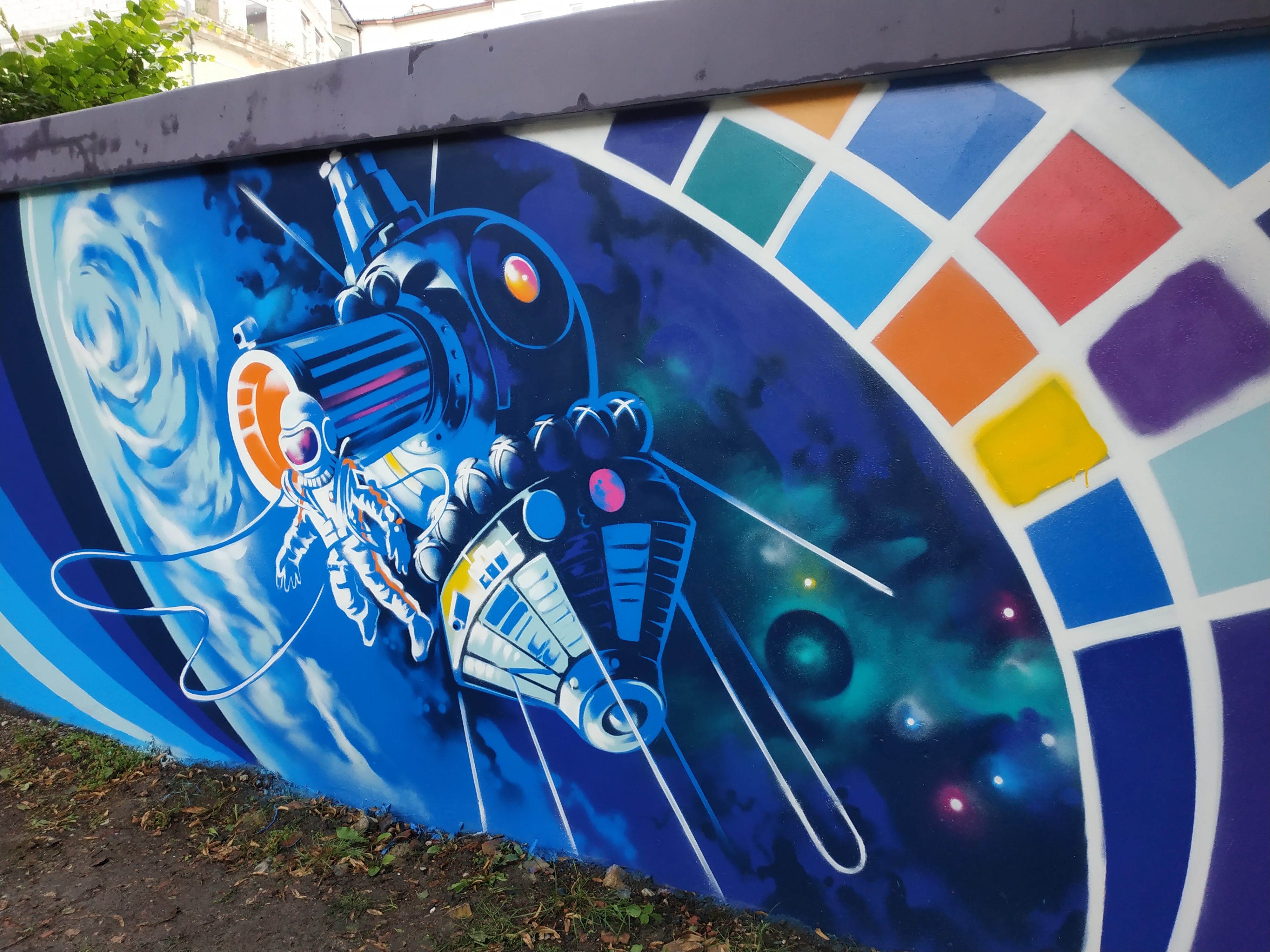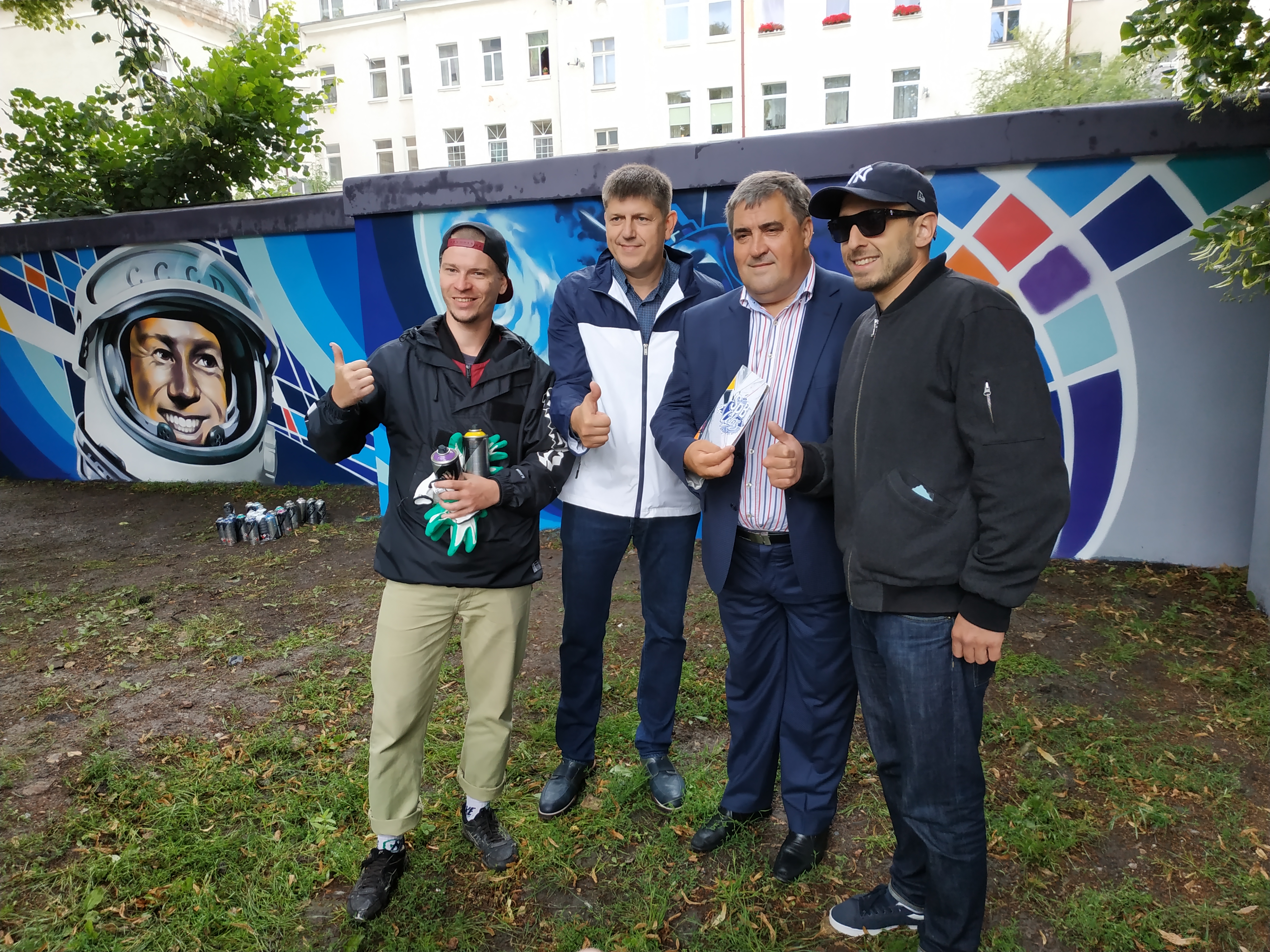 Полотном для космической картины станет стена в сквере у памятного знака «Землякам-космонавтам» на проспекте Мира, которая уже частично преобразилась. Старт проекту был дан в День города. 7 июля 2019 года профессиональные граффитисты вместе с горожанами и главой городского округа «Город Калининград» Алексеем Силановым приняли участие в создании портрета космонавта Алексея Леонова и изображения космического корабля.