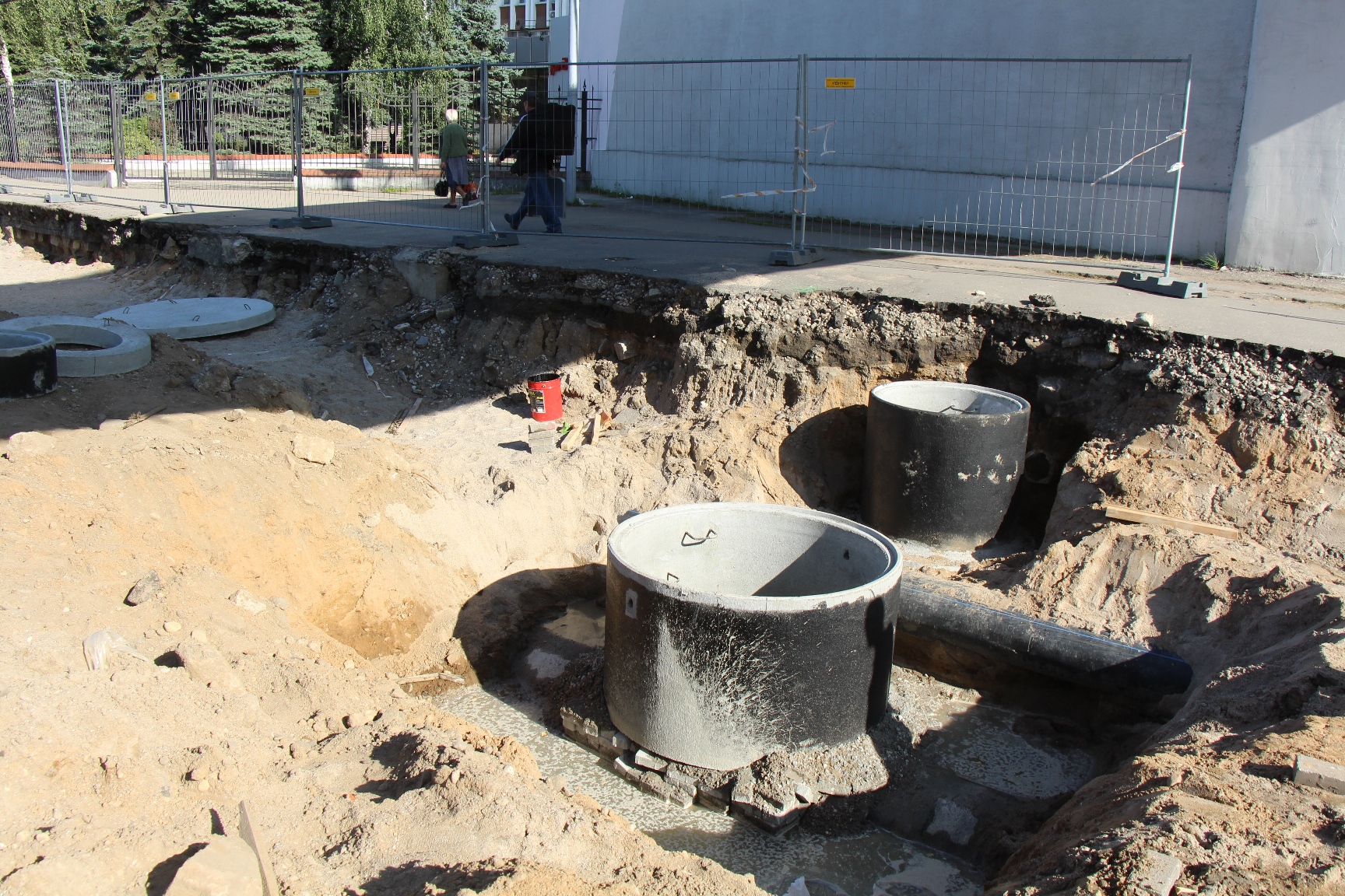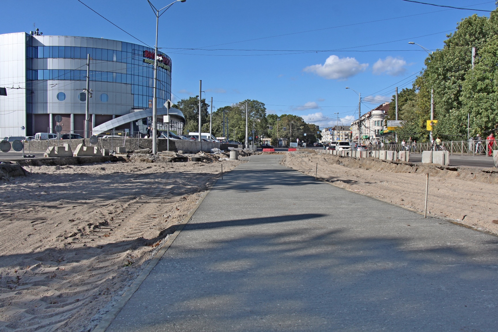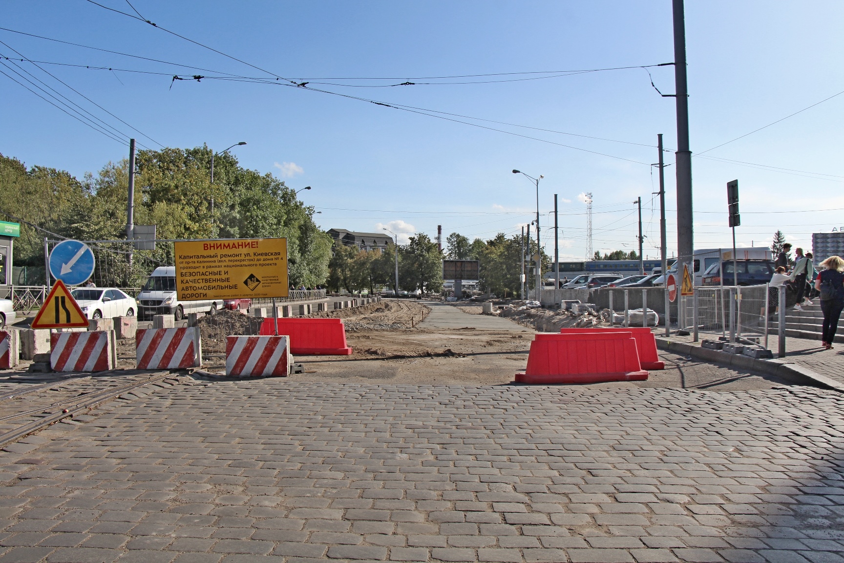 Начальный этап работ был особенно сложным, так как под улицей проходят водопроводные, канализационные, газовые сети, силовые кабели. Сейчас здесь уже переложен водовод, идёт монтаж системы ливневой канализации, подготовка и бетонирование основания для трамвайных путей.