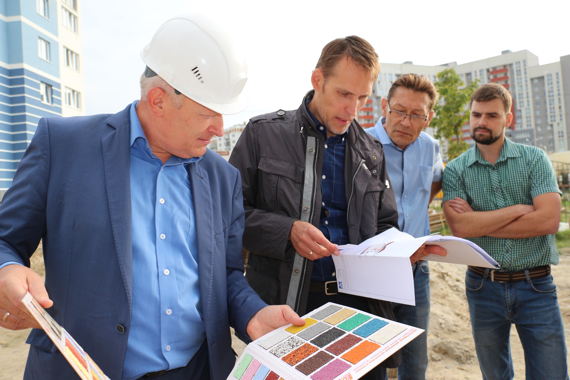 Главный архитектор посетил объект, чтобы обсудить с подрядчиком и представителями МКУ «УКС» вопросы цветового оформления.