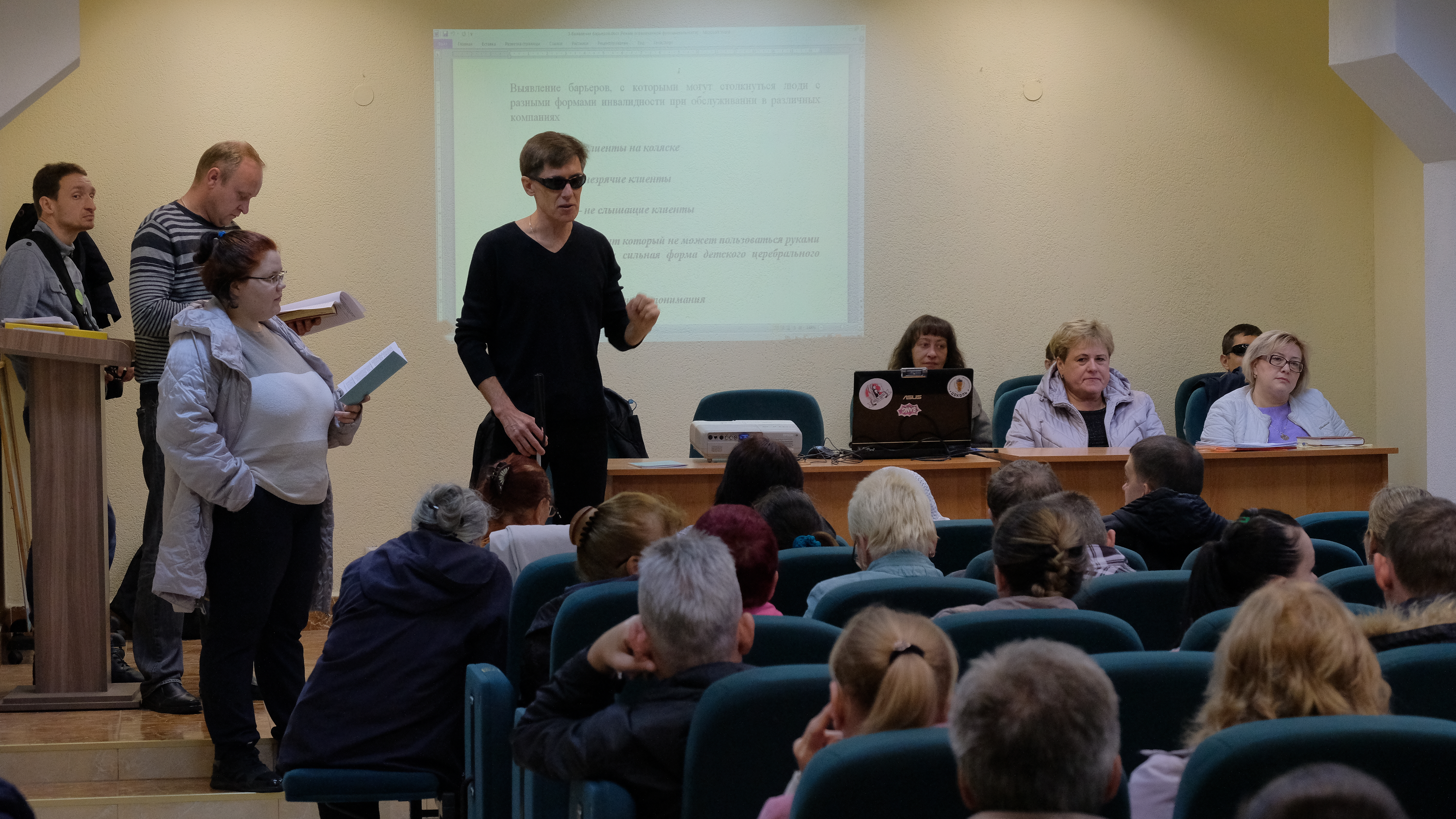 Председатель КРООООИ «Ассоциация молодых инвалидов России «Аппарель» Сергей Киселев рассказал линейному персоналу о том, как помочь инвалидам, дал советы по общению с людьми с ограниченными возможностями здоровья.