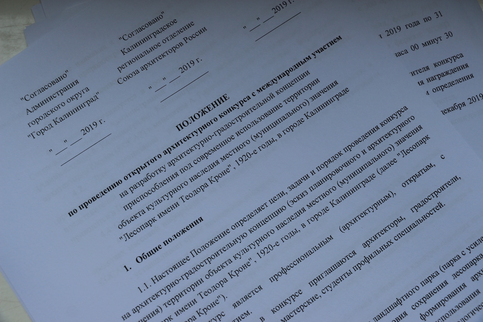 Информация об объявлении конкурса вместе с Положением о проведении конкурса размещена на интернет-ресурсах Администрации городского округа «Город Калининград» (https://www.klgd.ru/), Калининградского отделения «Союза архитекторов России» (http://www.architektura39.ru/) и на сайте «Лесопарк имени Теодора Кроне» (http://www.park-krone.ru).