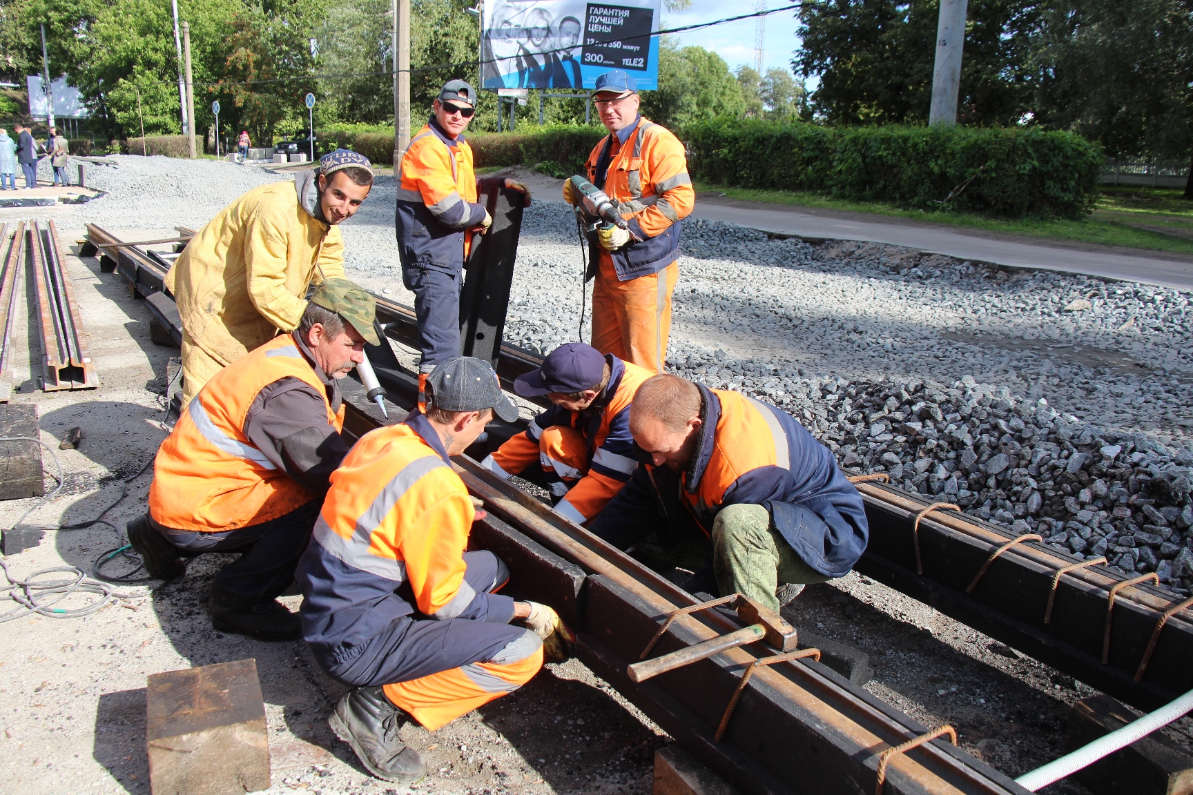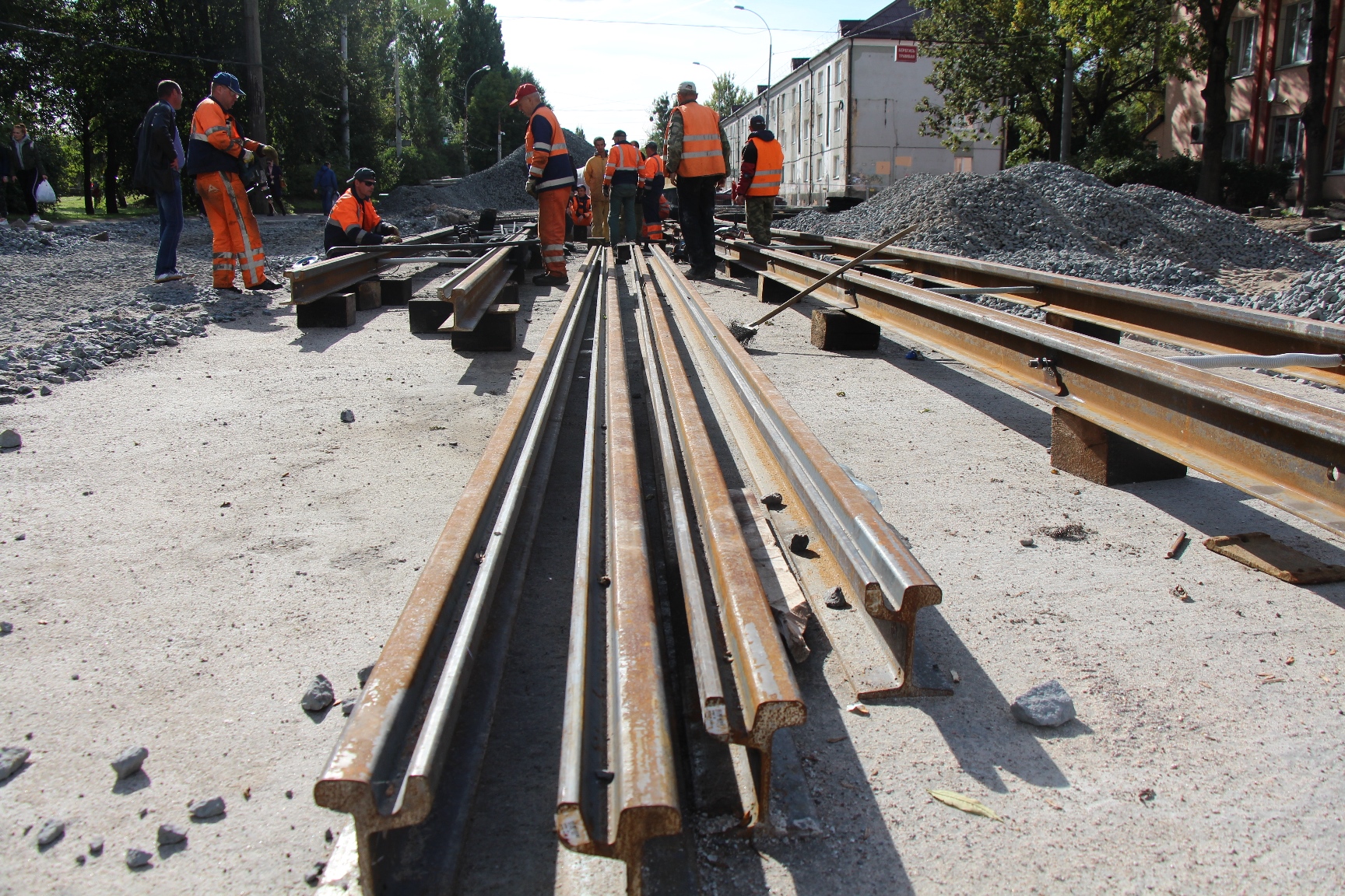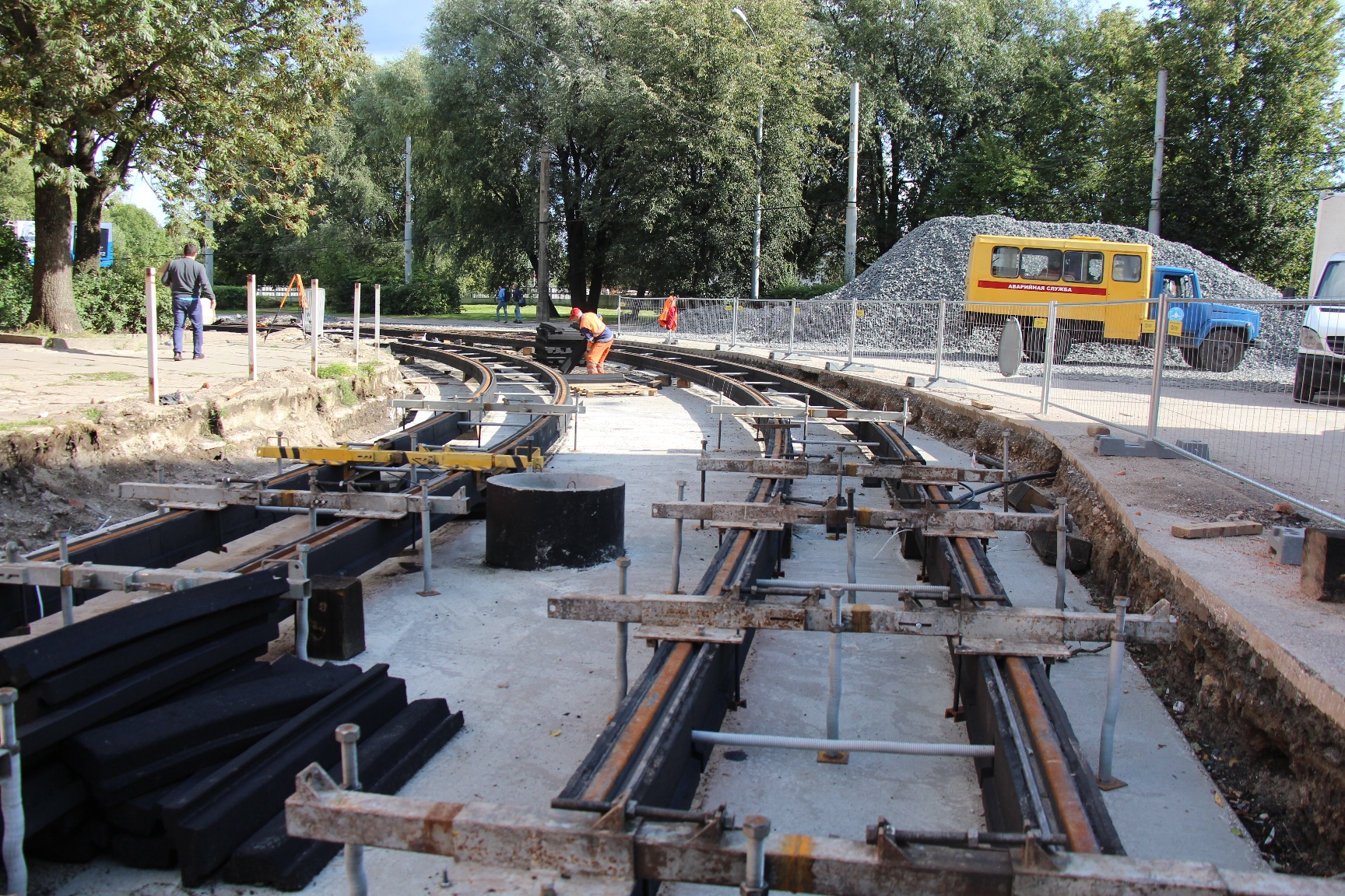 По завершению монтажа рельсов на закруглении специалисты «Калининград-ГорТраса» начнут работы на прямых отрезках, а после этого можно будет приступать к укладке выравнивающего слоя на проезжей части по полосам.