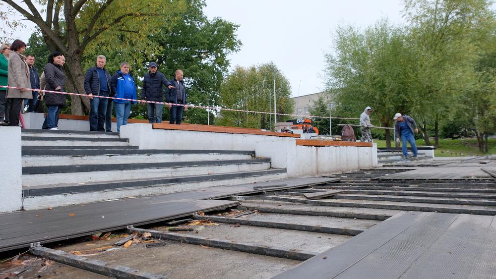 Следующий объект в списке главы города – набережная озера Летнее. Со вчерашнего дня там ведутся работы по устранению провалов на террасе, которые проводит подрядная организация в рамках гарантийных обязательств.