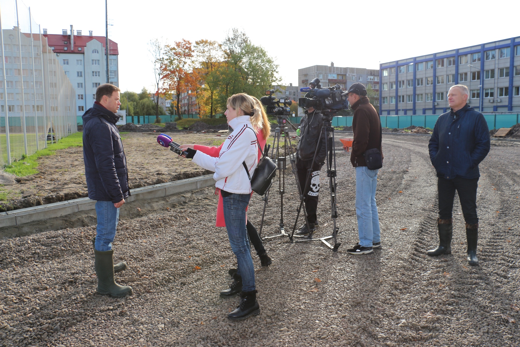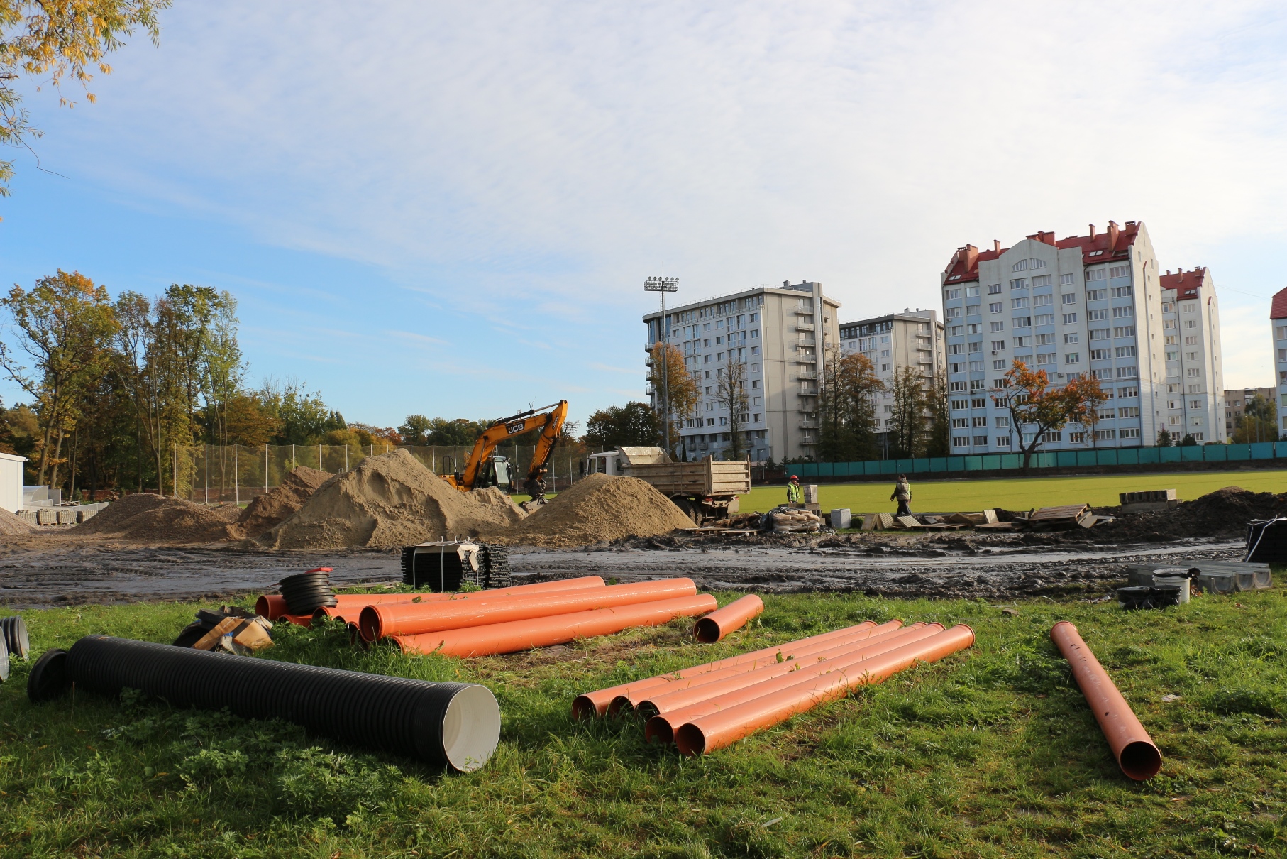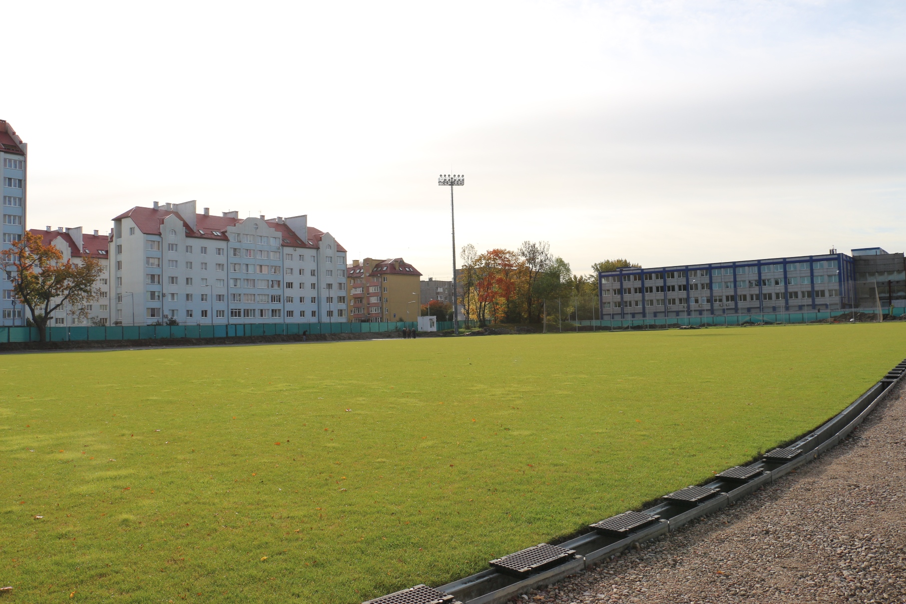 Артур Крупин отметил, что работа на объекте ведется хорошими темпами: «Сейчас строители занимаются устройством основания. Выполнены дренажи, водоотведение, идет уплотнение основания. Ведется укладка асфальтобетонного покрытия. Затем будем укладывать профессиональное многокомпонентное беговое покрытие. Покрытие в три слоя, в том числе водопроницаемое полиуретановое и финальное - натуральный каучук. Аналогов таких дорожек на открытых стадионах в Калининграде пока нет. Все материалы, которые используются, дают возможность легкоатлетам тренироваться круглогодично. В октябре мы закончим основание. К концу месяца придут составы для финишного покрытия. Планируем в конце ноября завершить объект».
