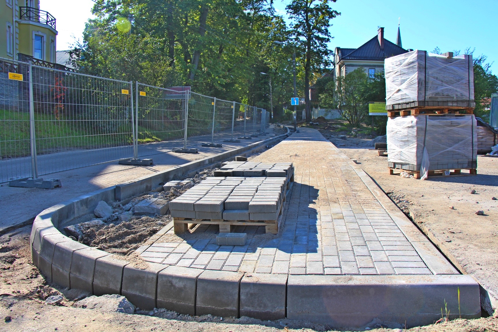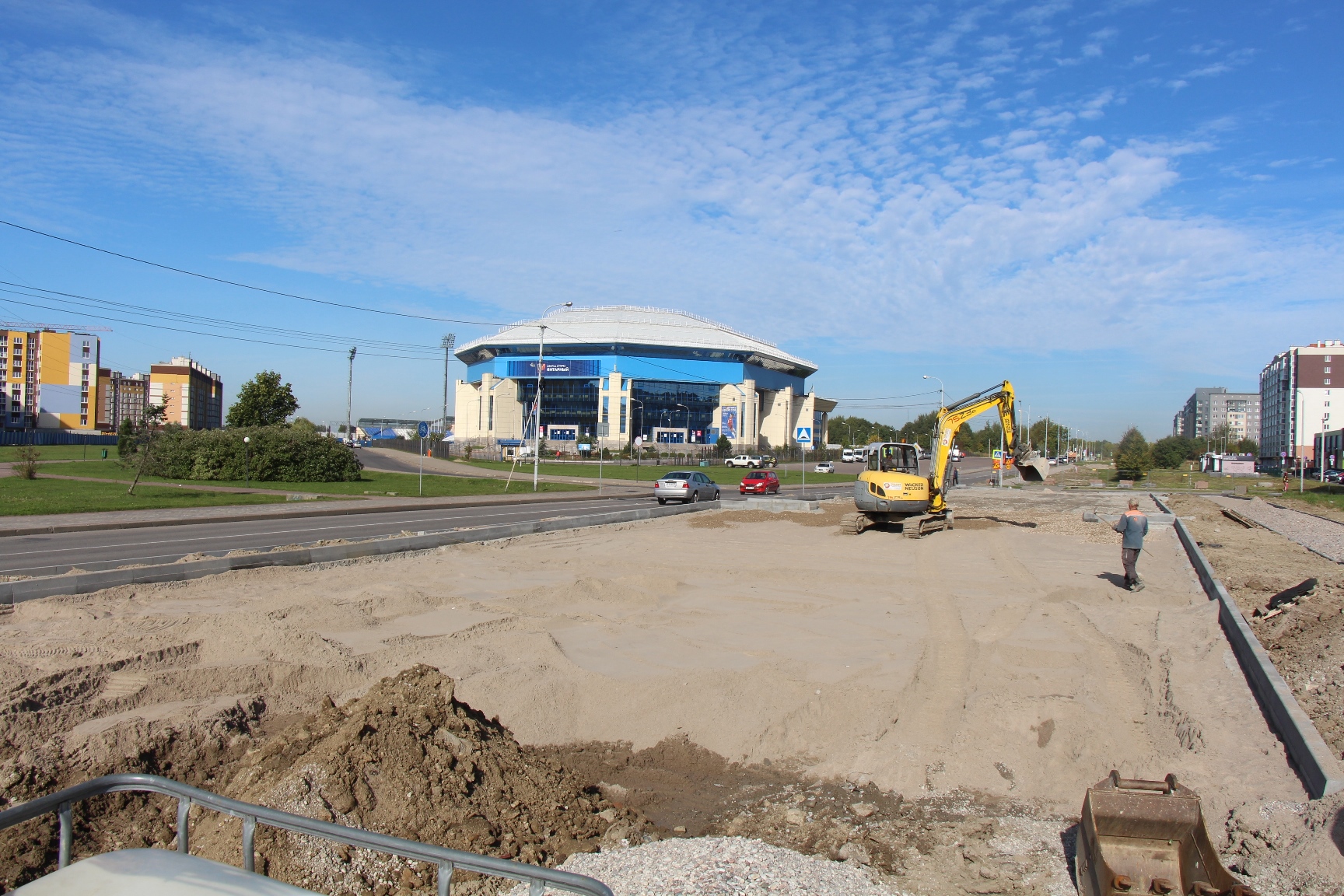 Полным ходом идёт ремонт тротуара по ул. Согласия от разворотного кольца на ул. П. Панина до ул. Мирной напротив дворца спорта «Янтарный», здесь одновременно строят стоянку для автомобилей в районе нового корпуса детского сада.