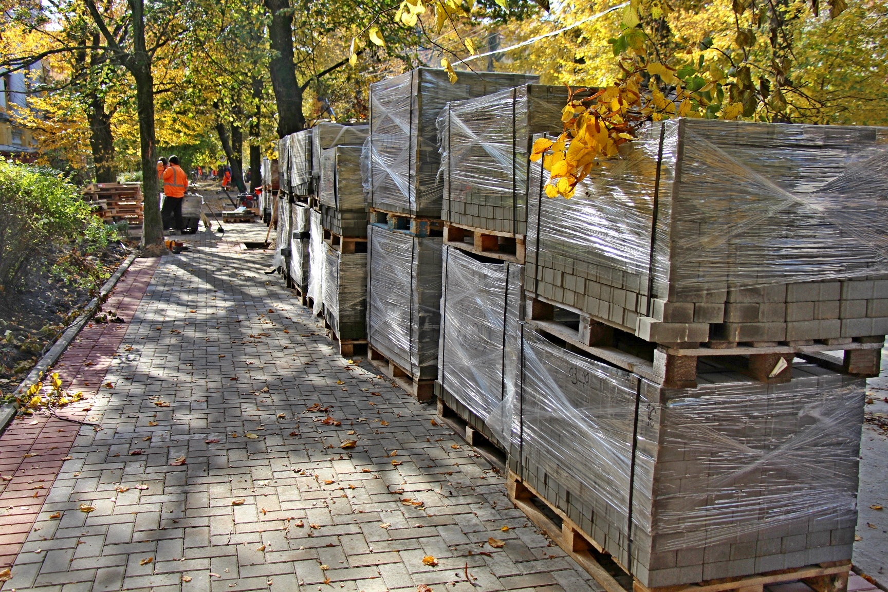 Ремонт ведут сразу на обеих сторонах улицы. На нечётной стороне плитку на новом тротуаре уложили уже от ул.Борзова до ул.Чекистов. На следующей неделе планируется закончить мостить парковку возле госпиталя ветеранов войн.