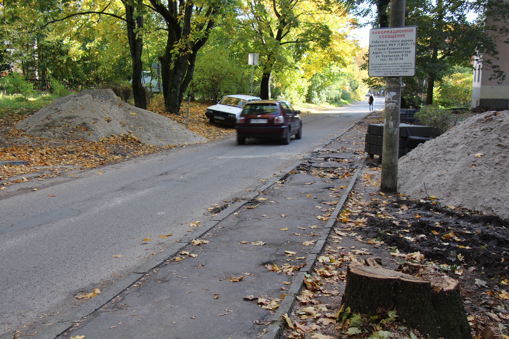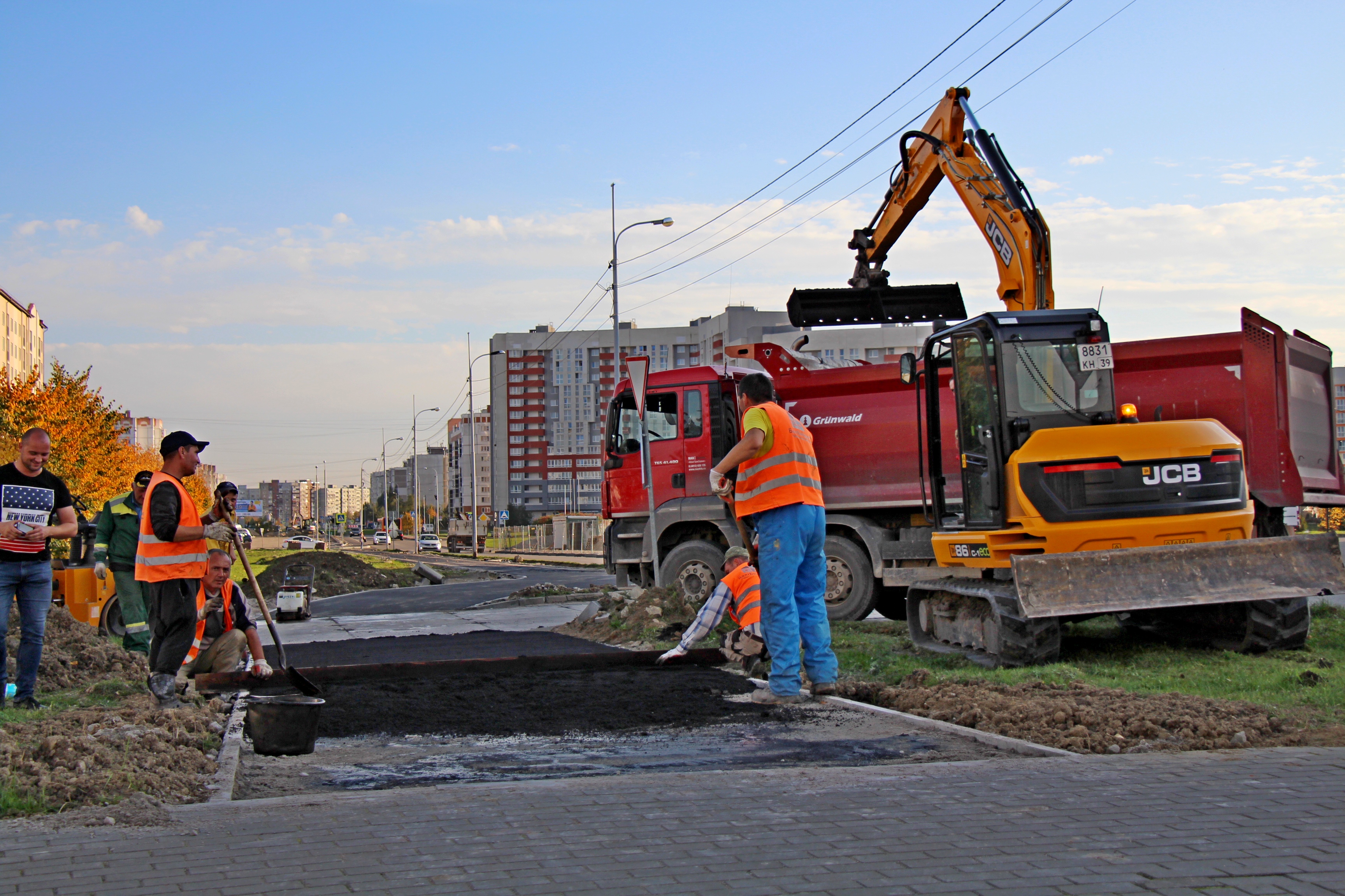 15 октября, используя хорошую погоду, дорожники старались приблизить завершение работ на тротуарах в самых разных концах Калининграда.