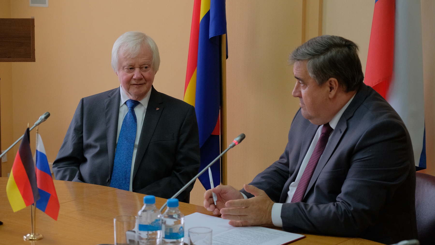 Сегодня, 18 октября, состоялась официальная встреча главы городского округа «Город Калининград» Алексея Силанова и Президента г. Киль (ФРГ) Ханса – Вернера Товара.