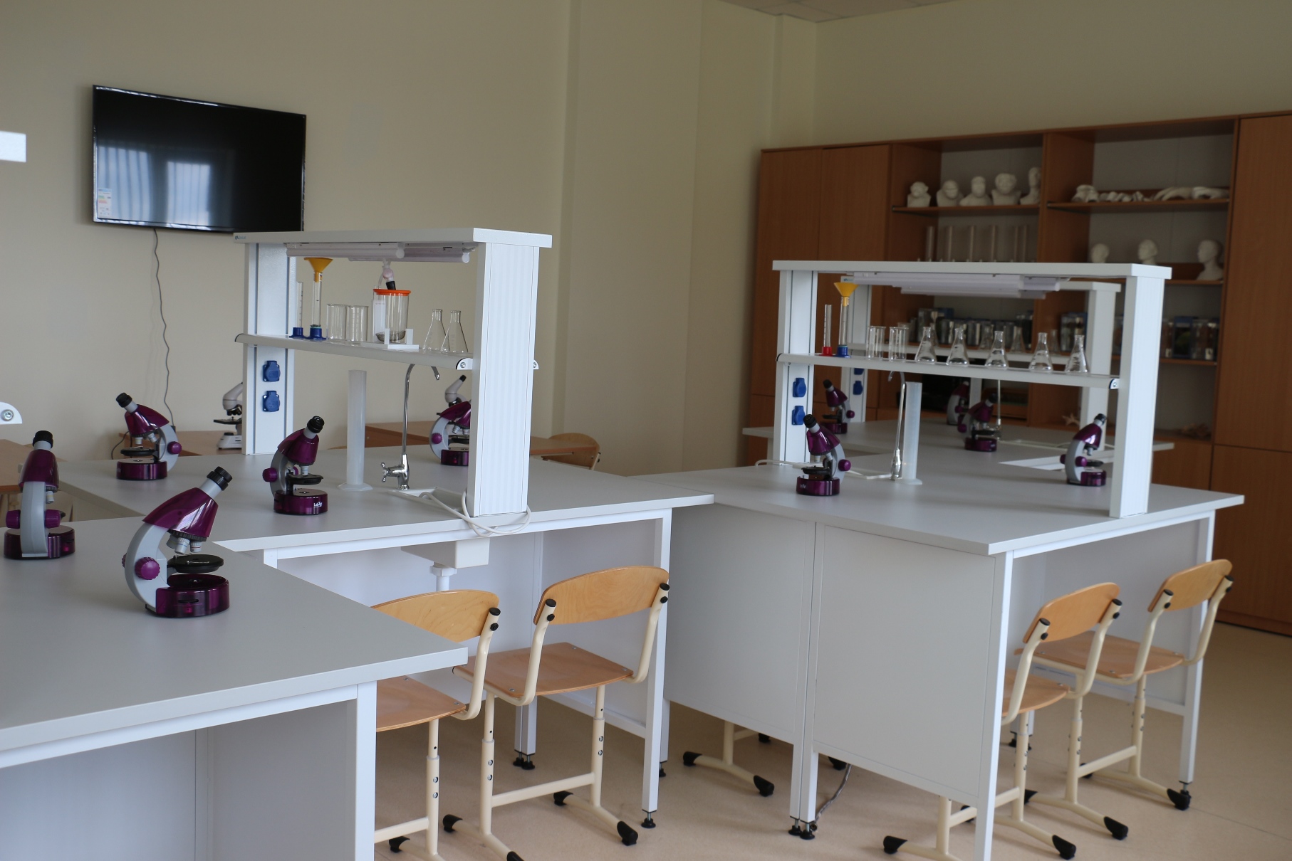 Школа оборудована высокотехнологичным учебным оборудованием (интерактивные доски, лингафонные кабинеты).