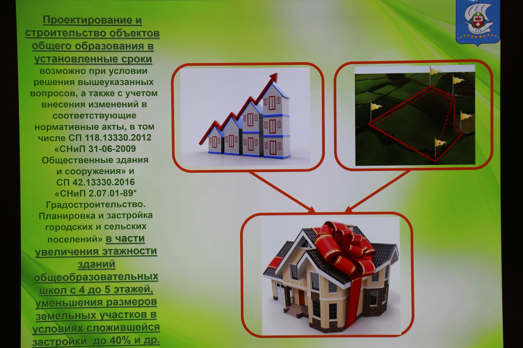 В сложившейся городской застройке при проектировании новых корпусов возникают трудности, которые осложнены многими вопросами. В том числе недостаточно площади существующих земельных участков для   расположения нового корпуса требуемой вместимости. Необходимо разработать проекты планировки территорий в связи с оформлением земельных участков. Также следует провести работы по изъятию для муниципальных нужд земельных участков иных собственников и мероприятия по оценке рыночной стоимости изымаемых участков.