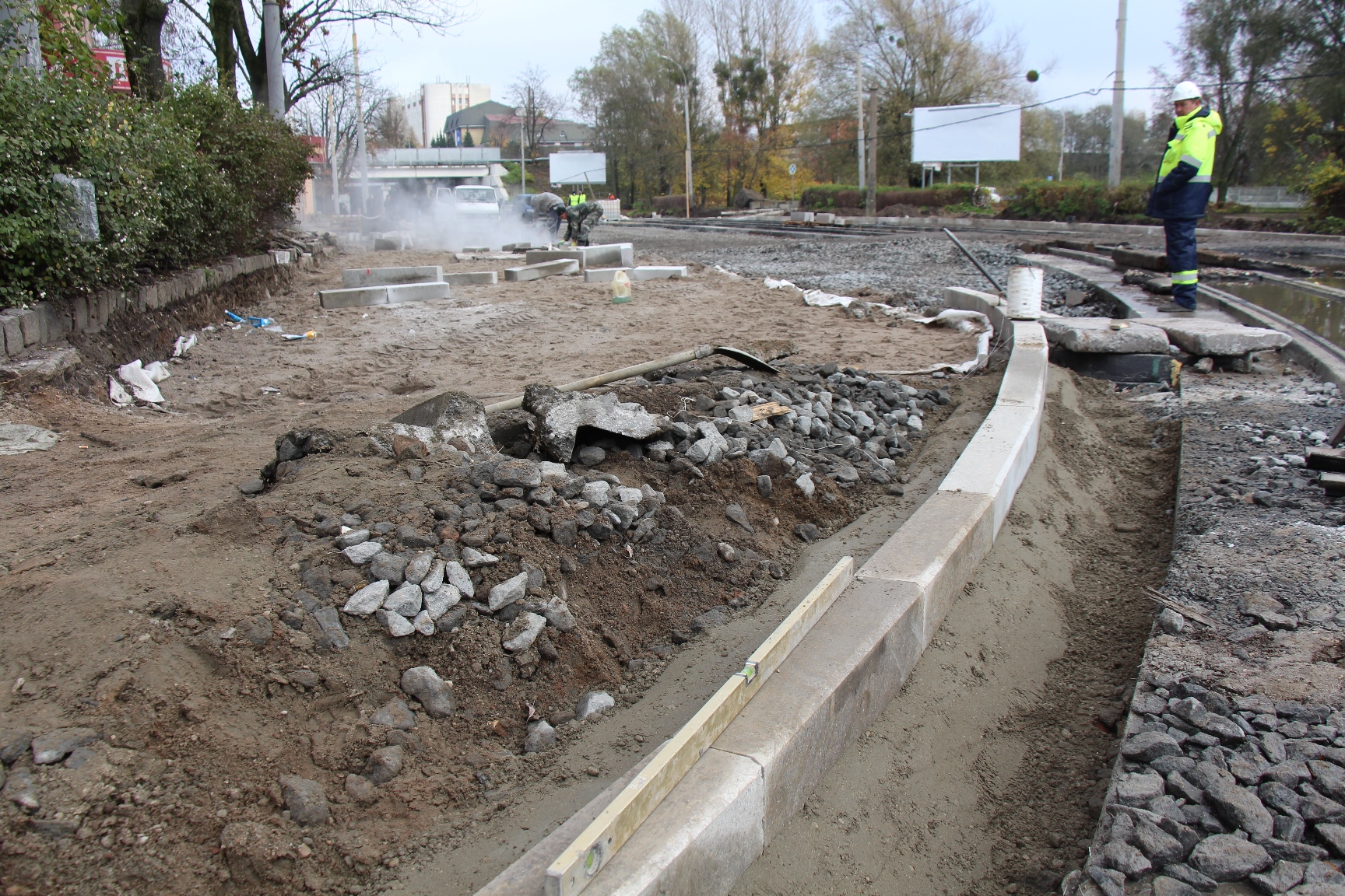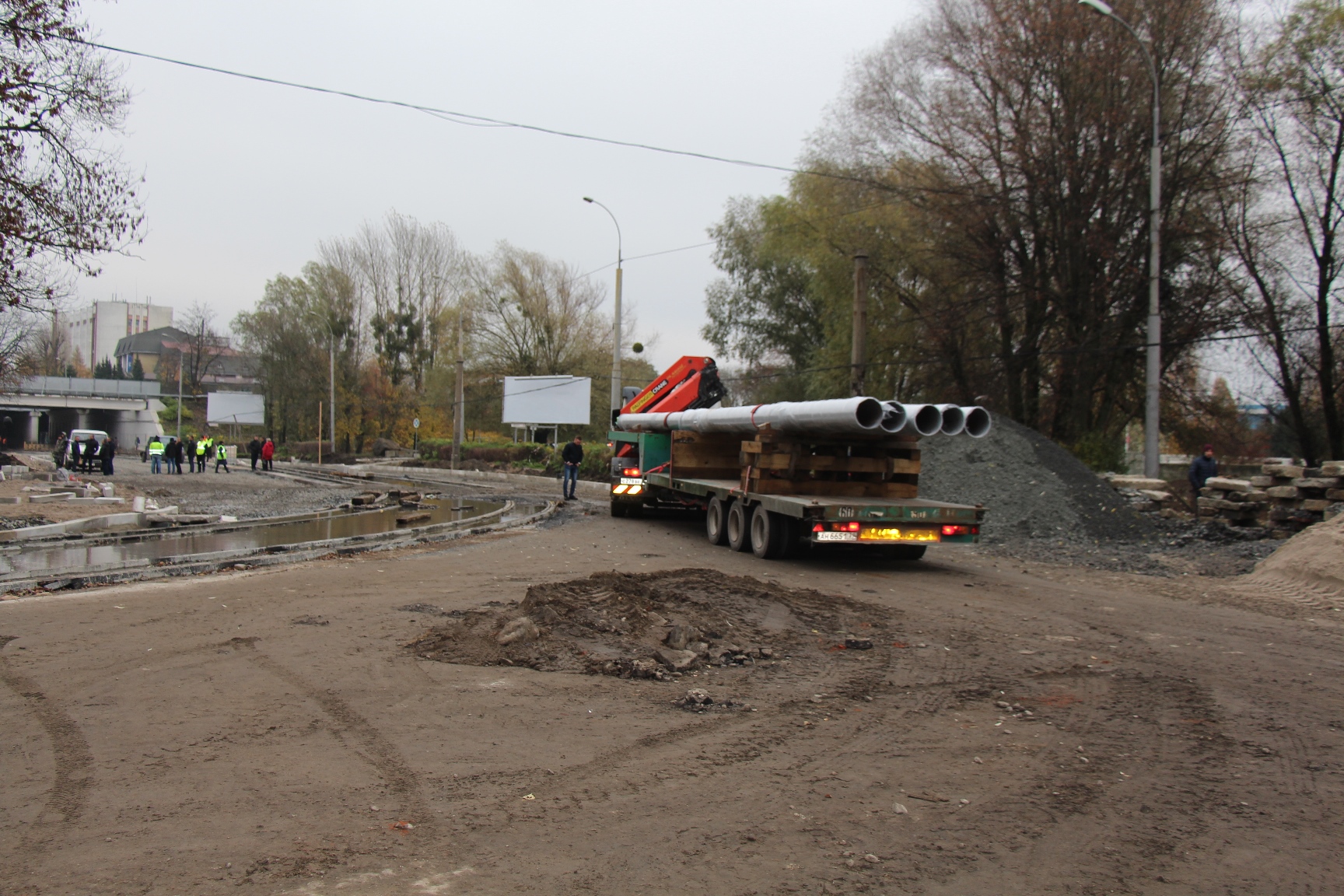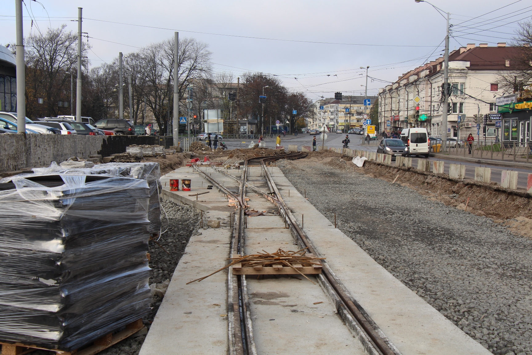Работы на Киевской продолжаются по графику, заканчивается оклейка рельсов вибропоглощающей резиной, монтаж опалубки, бетонирование. Выставлен бортовой камень вдоль дороги, как со стороны проспекта Калинина, так и от трамвайного депо. Два участка рельсов соединены ещё на прошлой неделе, на днях рельсы выведены непосредственно к перекрёстку. В выходные все работы на путях планируют завершить.