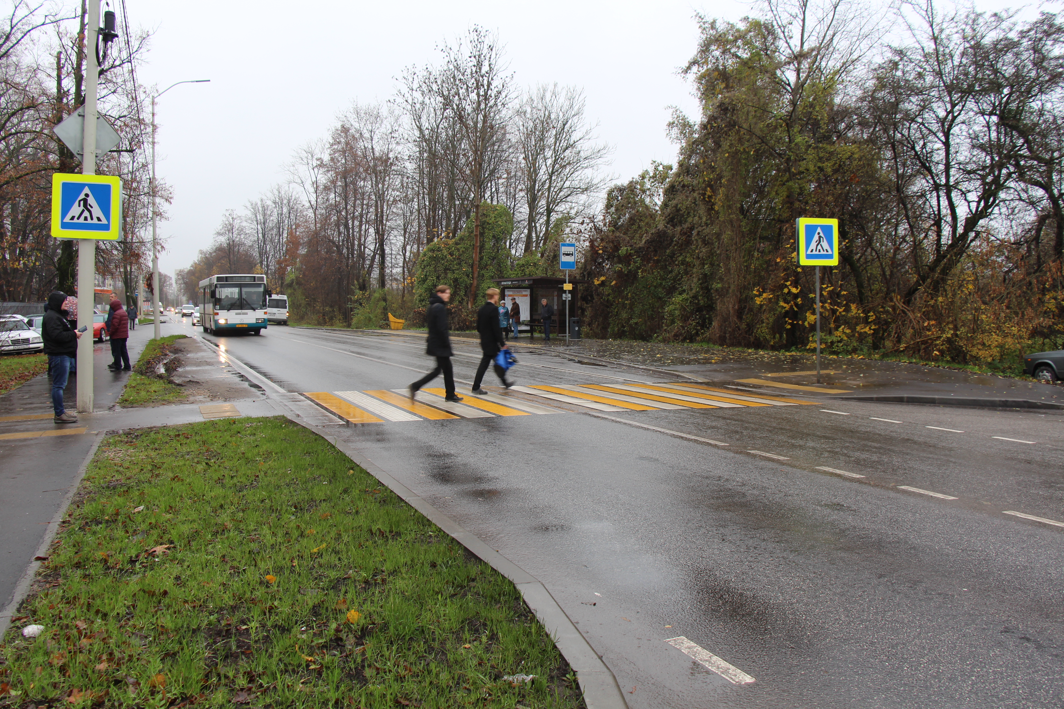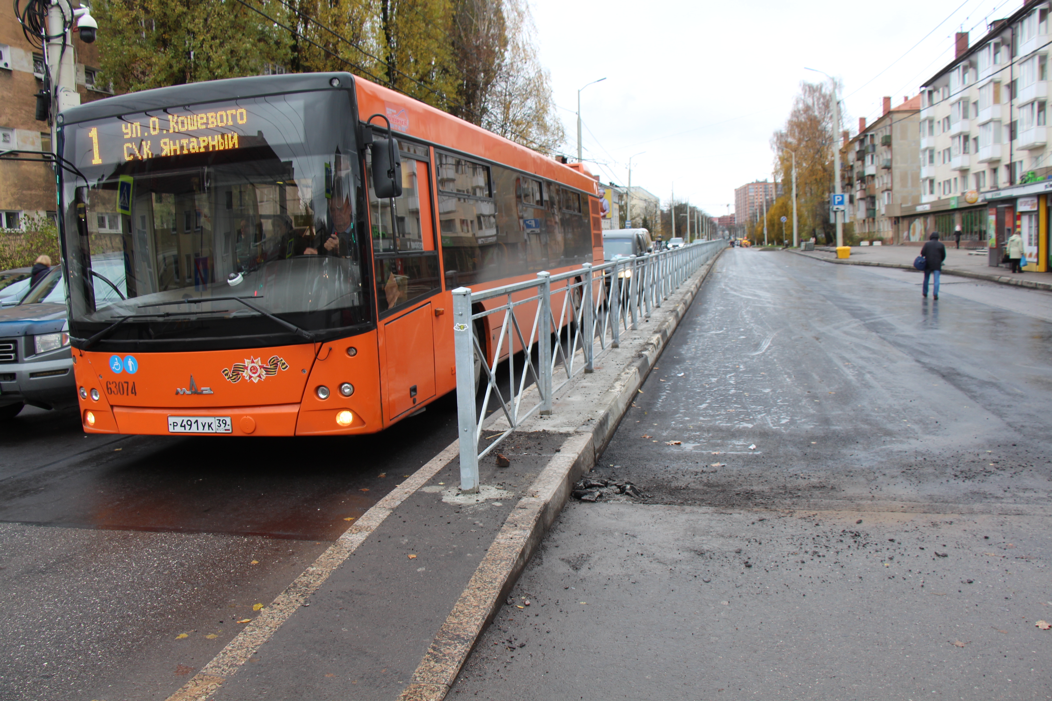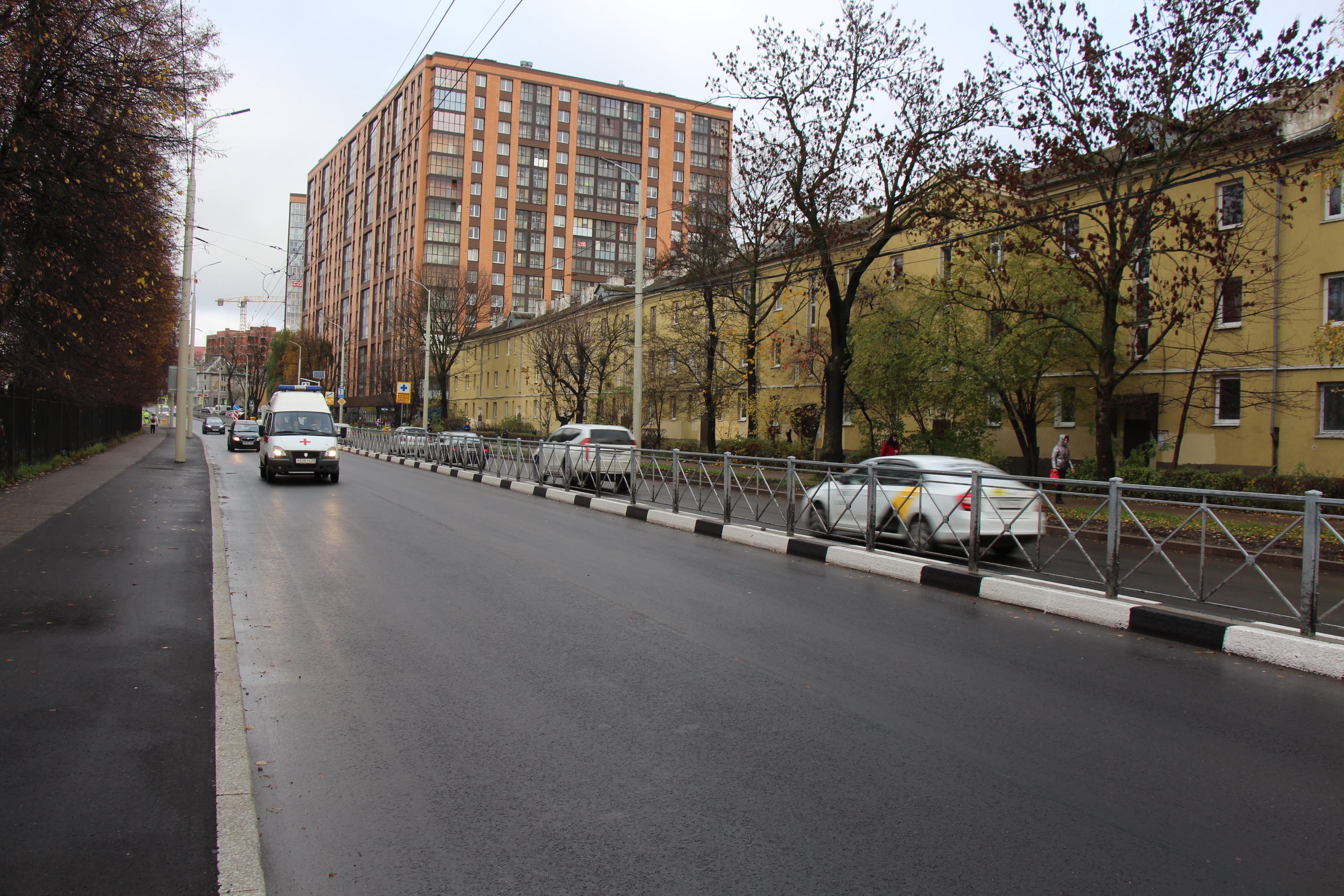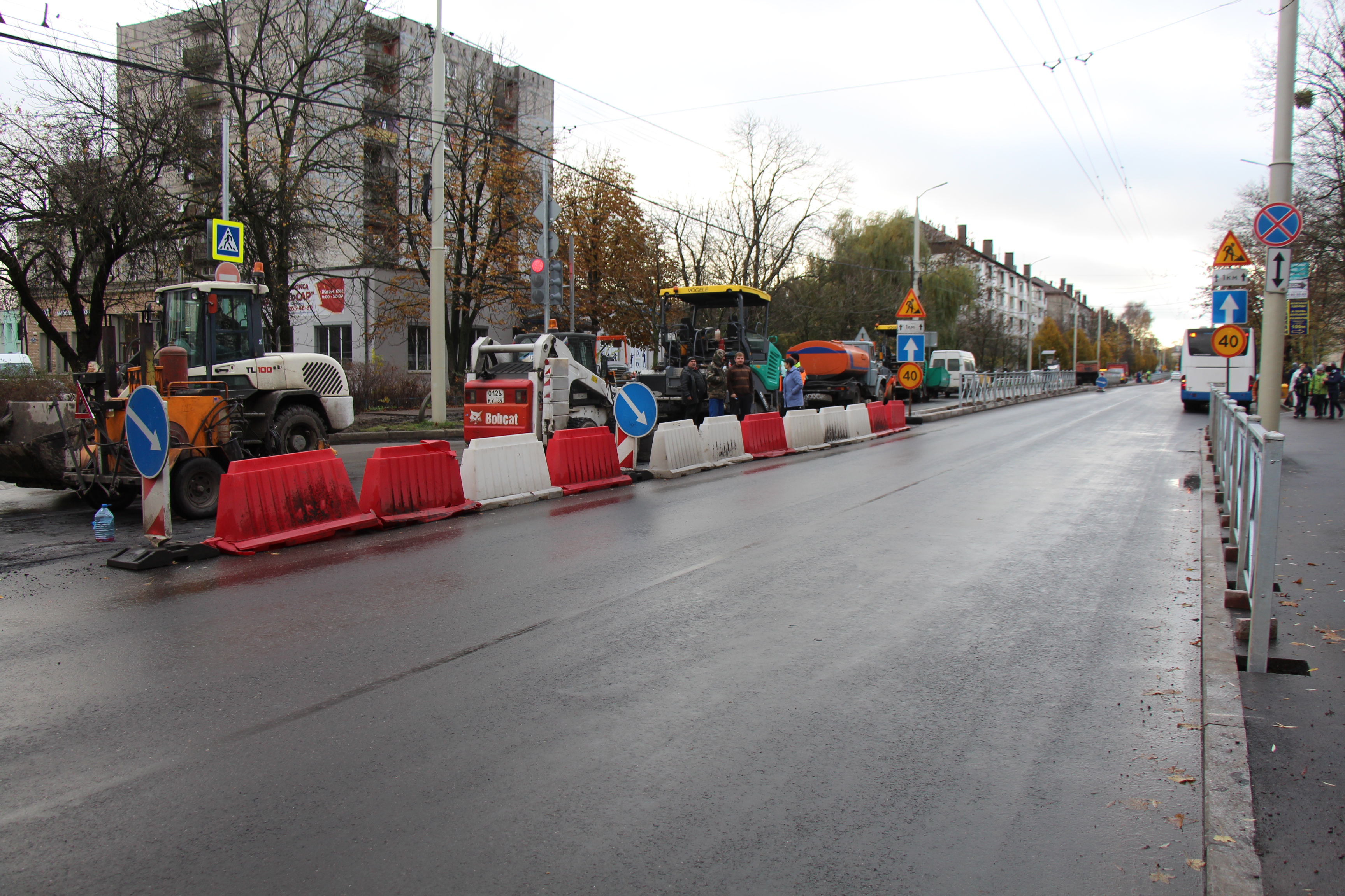 Сейчас завершается устройство верхнего слоя на чётной стороне улицы от ул. Ген.-Лейтенанта Озерова до Азовской. Подрядчик, в соответствии со сроками постановления о введении одностороннего движения по Горького, планирует вернуть транспорт на обе полосы. Дорожники оборудуют переходы тактильной плиткой, наносят на переходы двухцветные «зебры».
