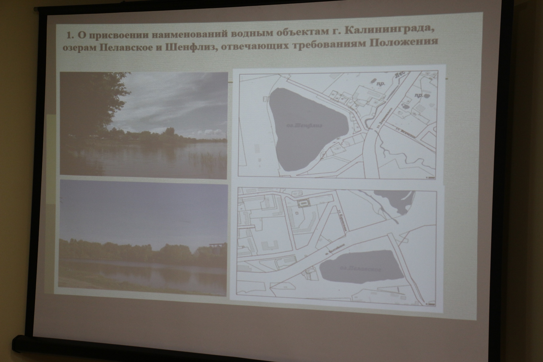 Озера, которые всем калининградцам известны как Шенфлиз и Пелавское, до сих пор не были официально проименованы, эти привычные названия, кроме как на картографических материалах, документально не были закреплены. Члены топонимической комиссии единогласно проголосовали за то, чтобы юридически узаконить эти наименования.