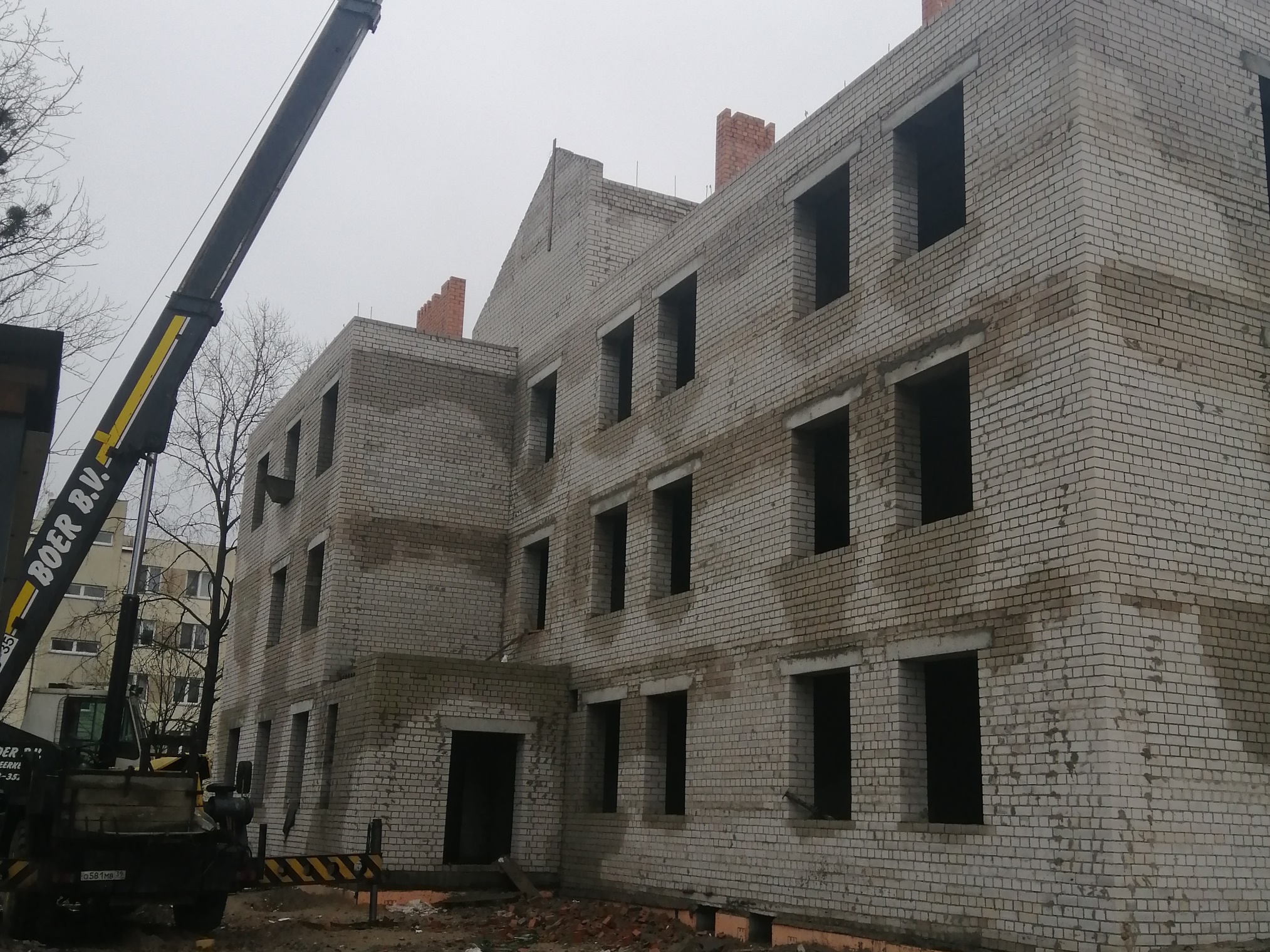 Строительство нового корпуса начальной школы-детского сада №72 на ул. Красной, 301 идет полным ходом. Здание заведено под крышу, и строители ведут работы, как снаружи, так и внутри корпуса.
