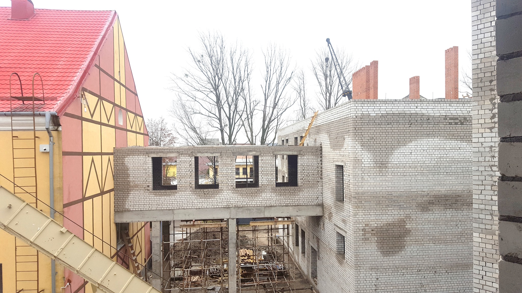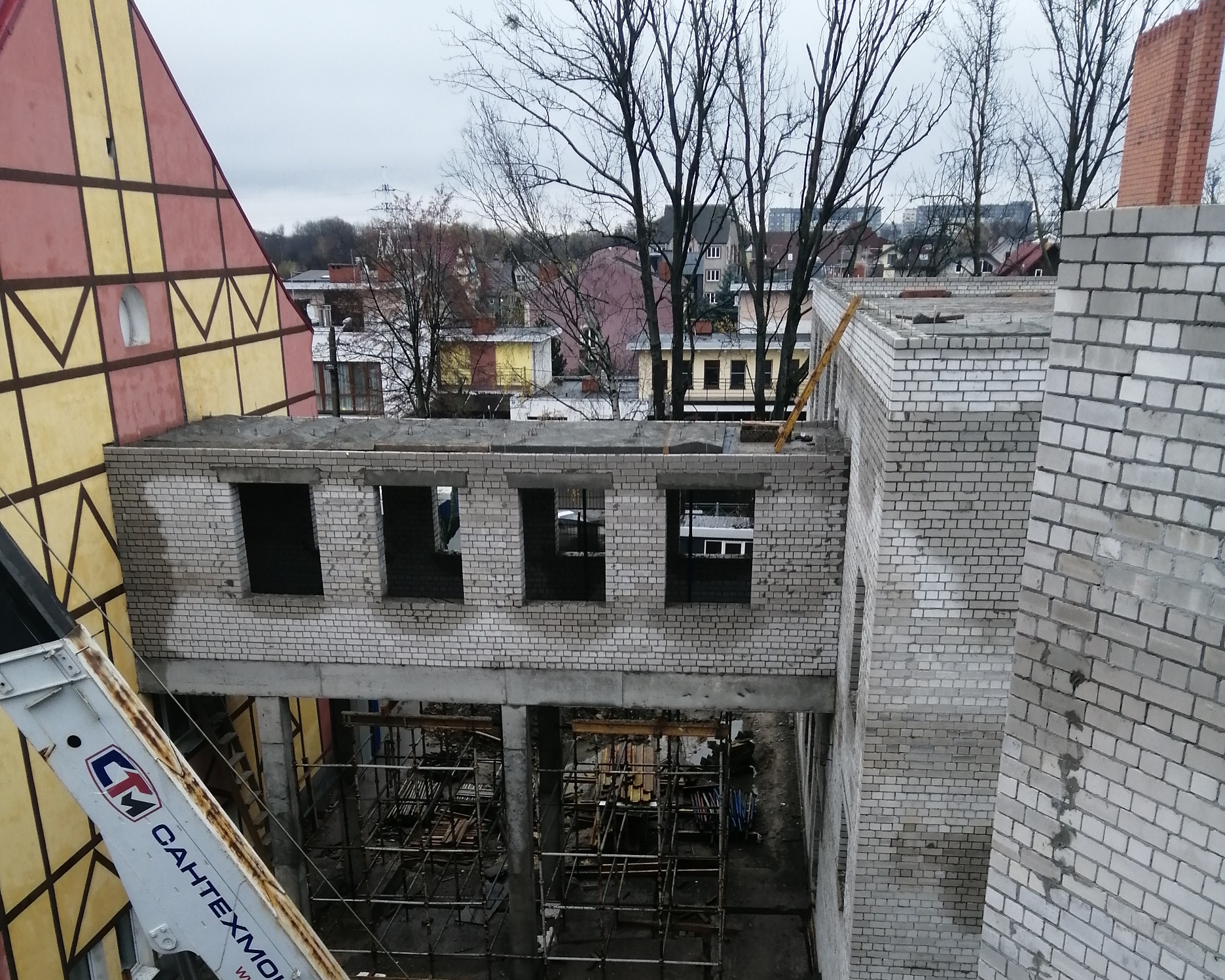Новый и старый корпуса детского сада на ул. Красной строители уже соединили переходной галереей на уровне 3-го этажа. Об этом рассказал во время рабочего совещания на объекте председатель комитета территориального развития и строительства администрации Калининграда Артур Крупин.