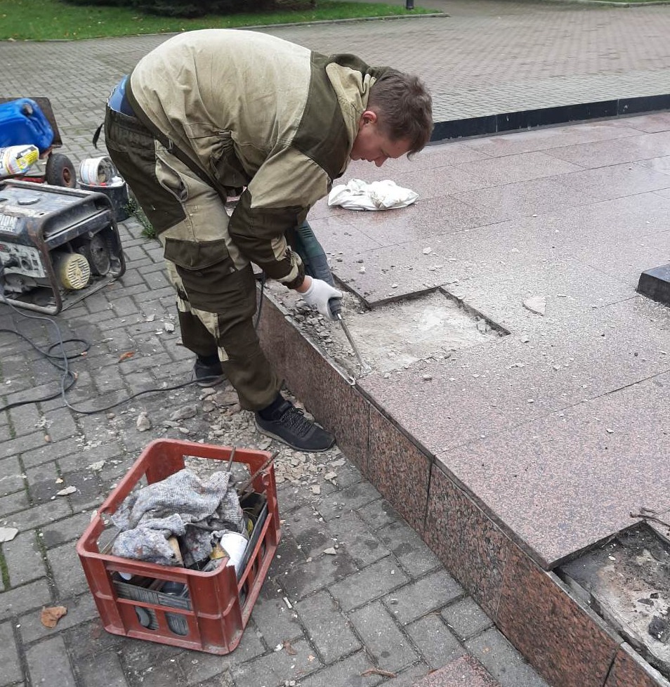 В этом году будут проведены работы по замене штукатурки, окраске фасадов, гидроизоляции постамента на памятном знаке героям-комсомольцам, погибшим при штурме Кенигсберга, который расположен на проспекте Калинина.