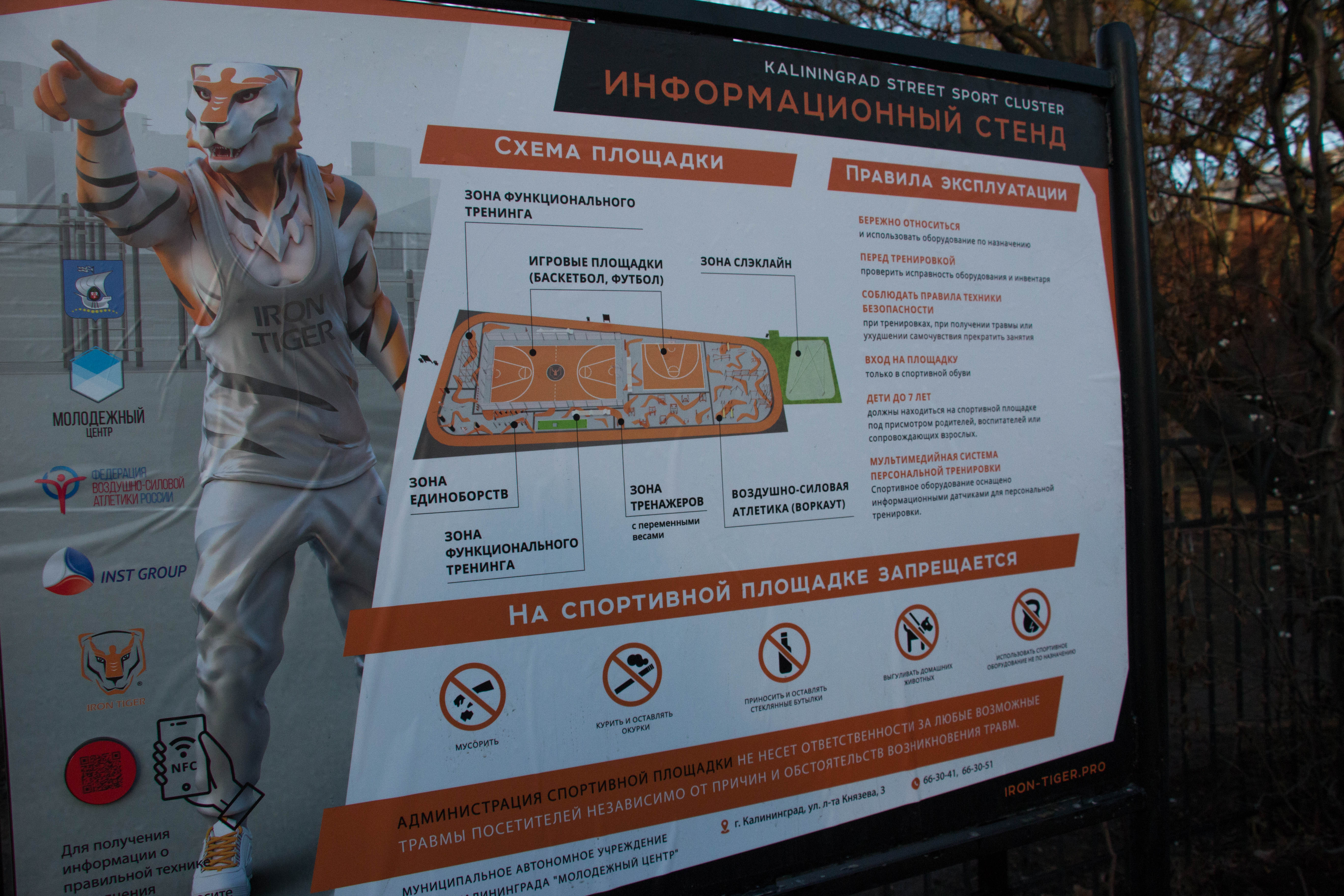 Как отмечают представители подрядной организации, это один из самых больших спорткластеров в России, его площадь составляет 2300 квадратных метров. В его структуру вошло несколько тренировочных секций: зоны воркаута, кроссфита, стрейтчинга, площадка для мини-футбола, баскетбола, бокса, бега, тренажеры для силовых упражнений. Подобные тренажеры установлены в Калининграде впервые, их отличительная особенность - они снабжены QR-кодами, сканировав которые можно получить подсказку, как правильно делать упражнения.