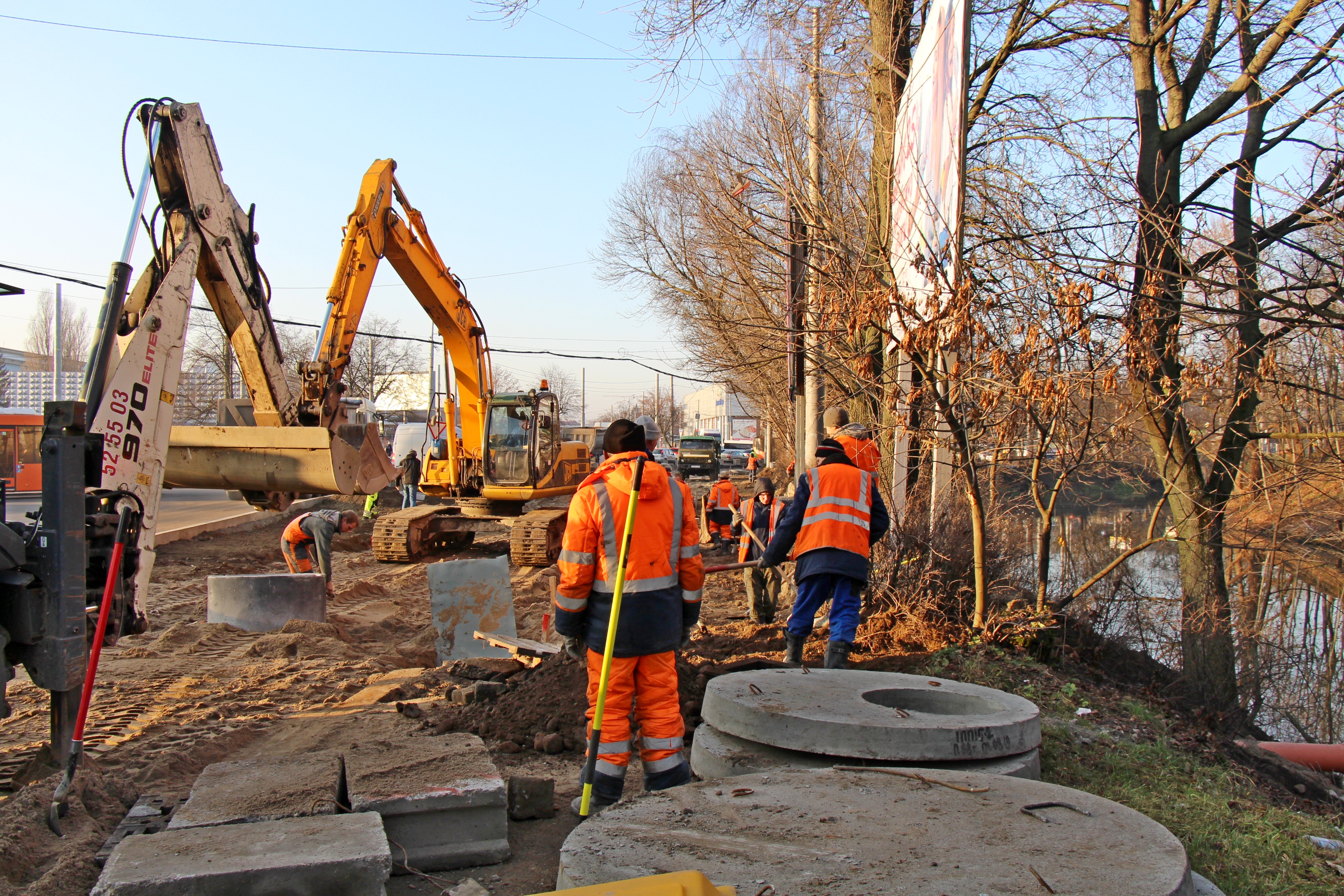 Специалистам МКУ «Калининград-ГорТрапнс» в ближайшие недели предстоит восстановить растяжки и заново подвесить контактную сеть, энергетики начинают устройство освещения над отремонтированным тротуаром по чётной стороне, а также над противоположным, где уже заканчивается подготовка основания.