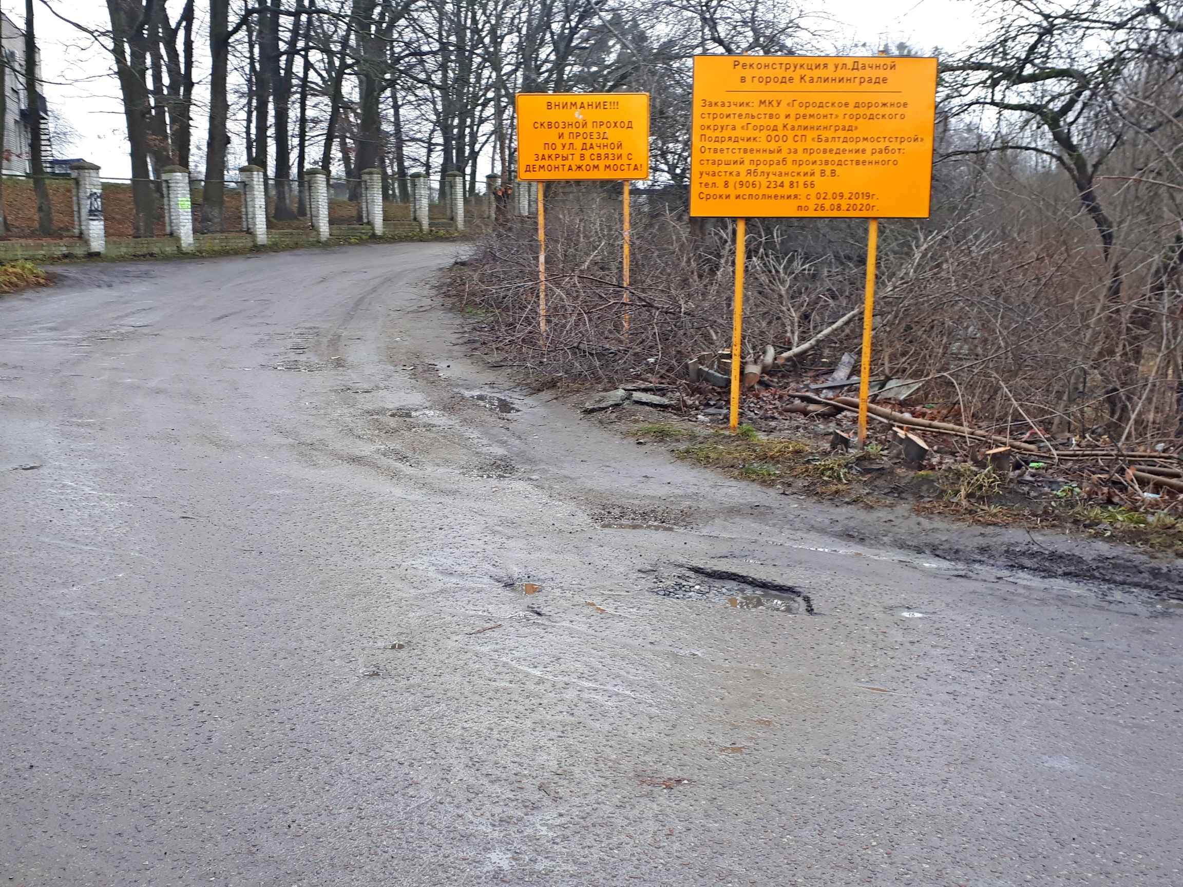 Продолжаются подготовительные работы и для реконструкции ул. Дачной. В соответствии с порубочным билетом заканчивается снос старых деревьев и самосева в створе будущей трассы, площадка огорожена, обозначена знаками и информационными щитами.