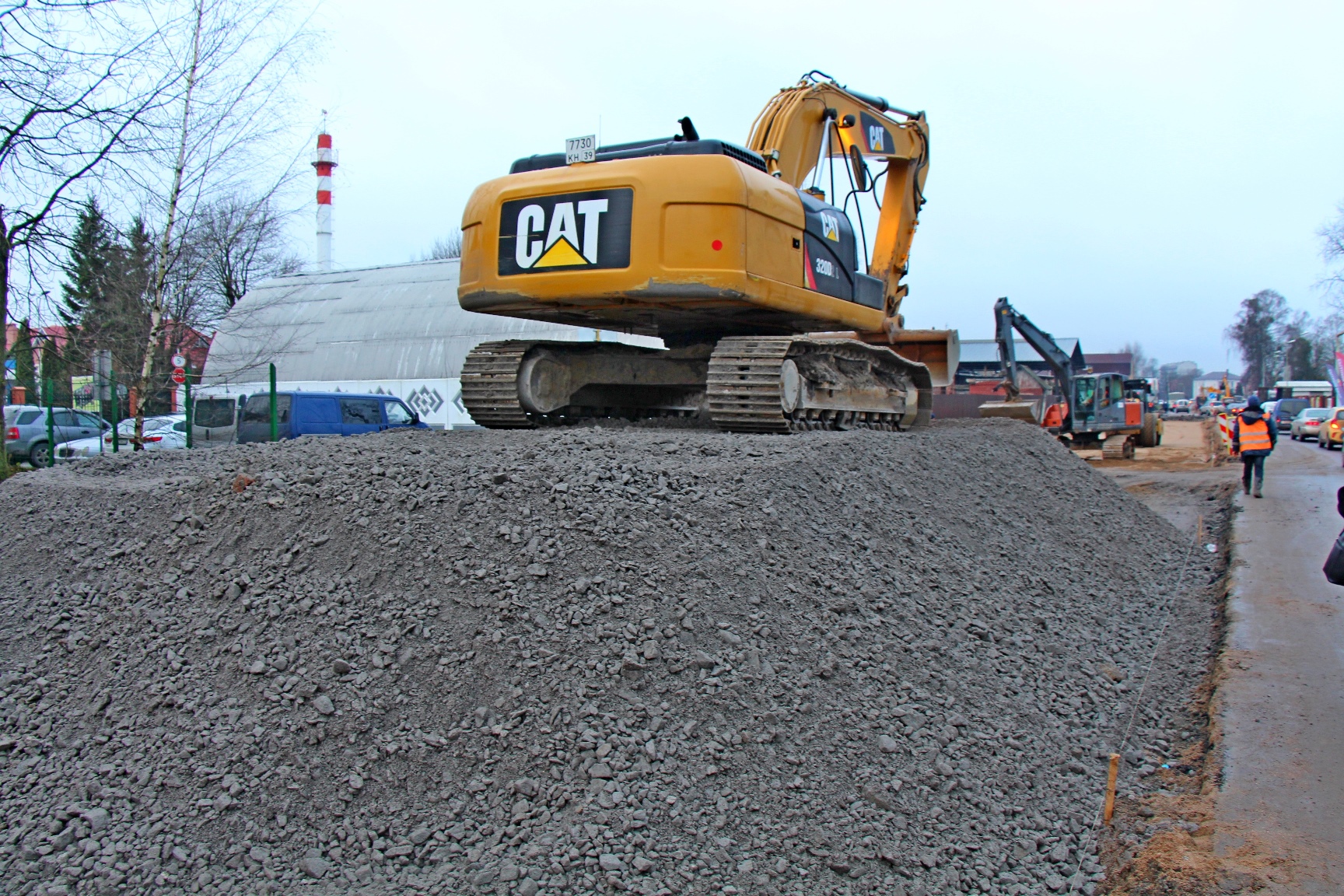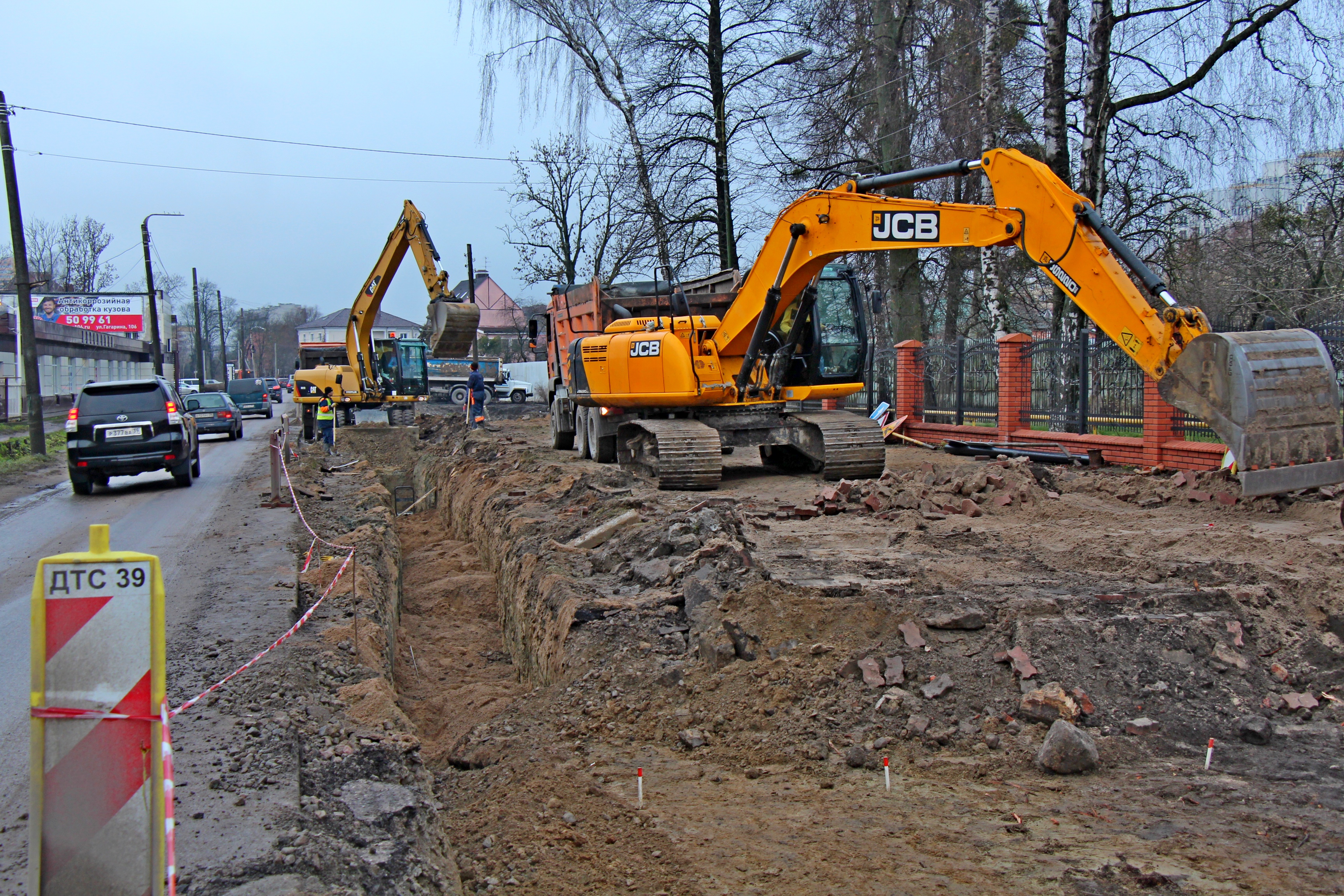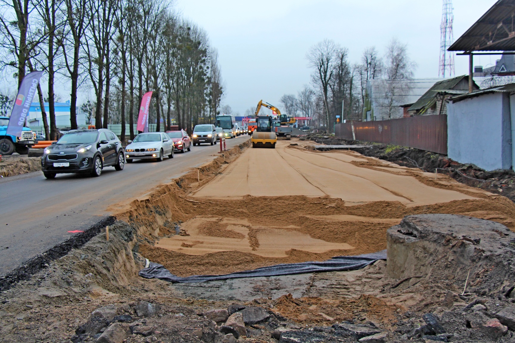 Дорожники продолжают прокладку траншей для дождевого коллектора и отсыпку основания будущей проезжей части. Идёт перенос других инженерных сетей.