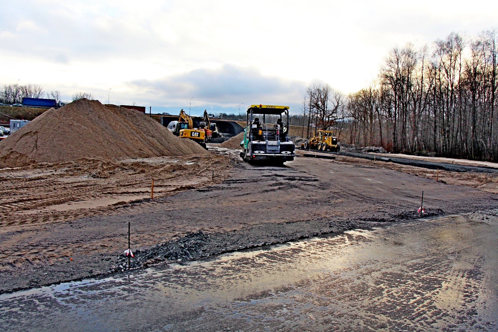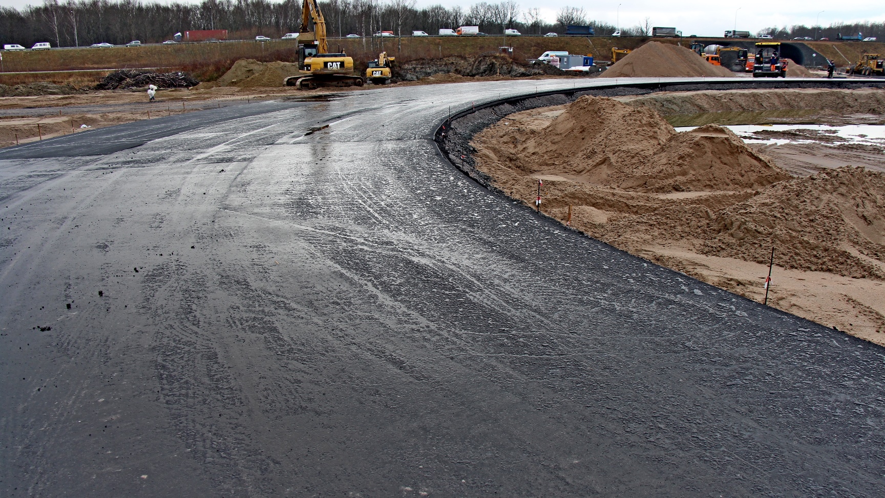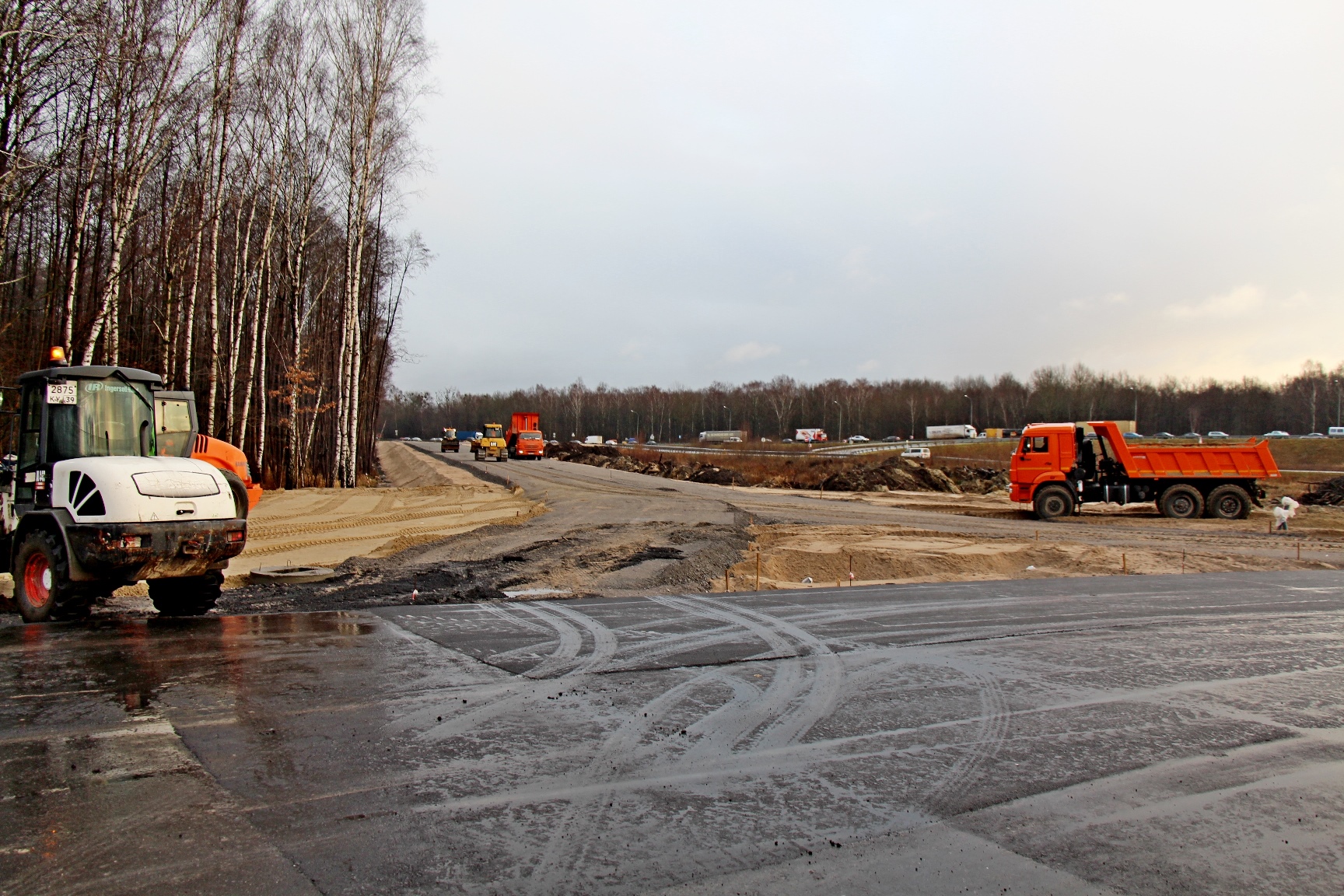 Одновременно с асфальтированием кольца продолжается подготовка основания на будущих съездах с Окружной, здесь закончили с песчаной подушкой и идёт отсыпка щебнем. Идёт также подготовка основания под тротуары и велодорожки с обеих сторон проезжей части, где уже уложен нижний слой асфальта на всём протяжении дороги до ул. Лукашова. Погода благоприятствует дорожным строителям, но верхний, более требовательный к температурам, слой асфальта будет уложен на Планерной весной.