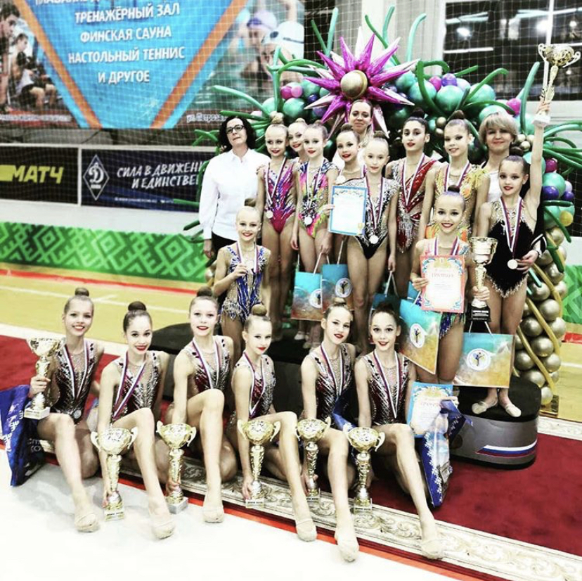 По программе групповых упражнений соревновалось 14 команд. Наши спортсменки заняли втрое место. Состав команды в групповых упражнениях Фоменко Софья, Соболь Кристина, Коновалова Милана, Кириллова Анастасия, Тихонова Алина, Тихонова Арина.