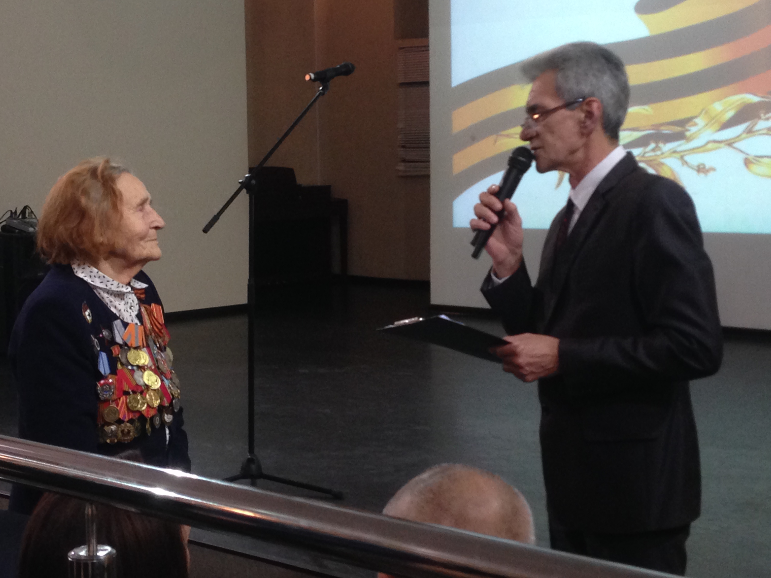 Для выступления на слушаниях пригласили Биденко Марию Степановну, участника Сталинградской битвы, награжденную орденом Красной звезды, Орденом Отечества 2 степени, медалями «За взятие Будапешта», «За Победу над Германией в Вов 1941-1945 годов». Она пообщалась с участниками мероприятия.