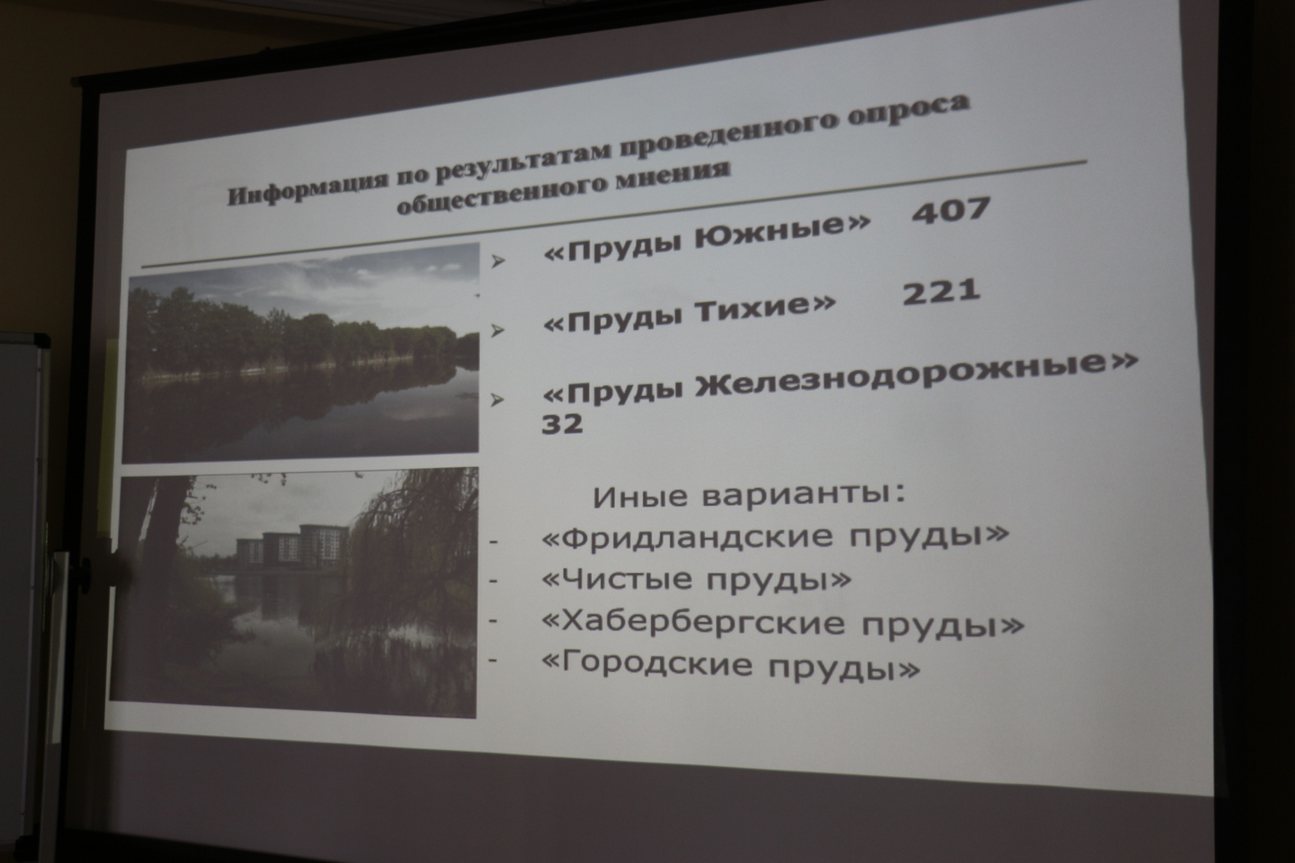 Например, по итогам одного из этих опросов двум рекреационным зонам, расположенным в Ленинградском районе, присвоены наименования сквер Согласия и сквер Елизаветинский. По результатам второго соцопроса по заключению топонимической комиссии решением городского Совета депутатов Калининграда пруды, расположенные в парке «Южном» официально получили одноименное название.