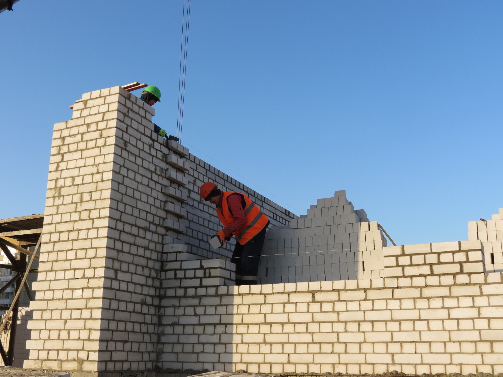В настоящее время на объекте выполняется устройство фундаментов здания, обратная засыпка фундаментов, перекрытие подвала, кирпичная кладка стен и перегородок первого этажа здания, вертикальная планировка территории.