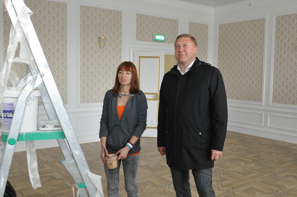 В ходе выездного рабочего совещания градоначальник проверил исполнение своего поручения по выделению дополнительных средств для ремонта входной группы ЗАГСа. В настоящее время уже произведена замена булыжника плиткой при входе в здание, началась подготовка фасада к покраске - шпаклевка, штукатурка и изготовление декоративных элементов. Также глава города осмотрел ремонтные работы в помещениях Дворца бракосочетаний, которые находятся в стадии завершения.