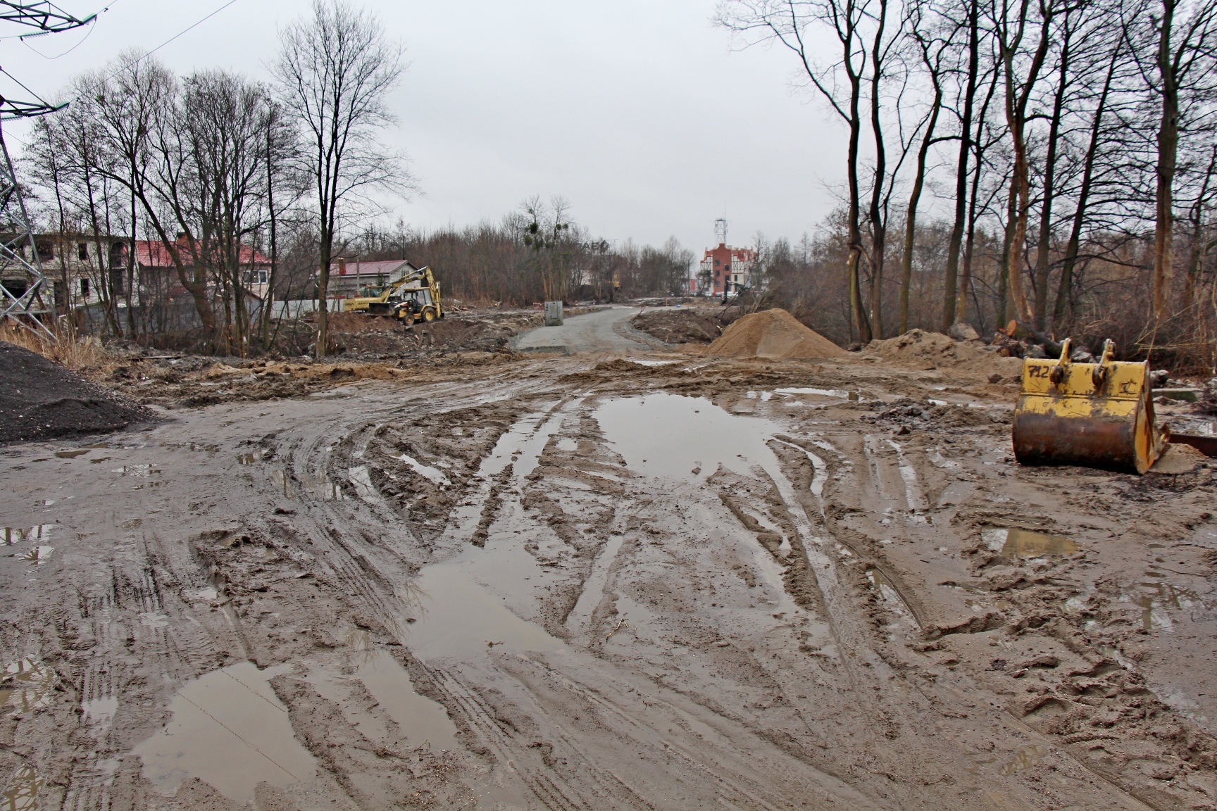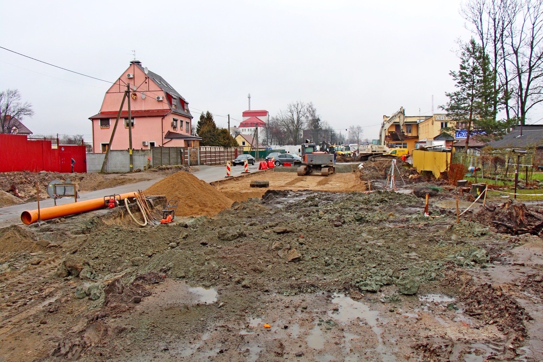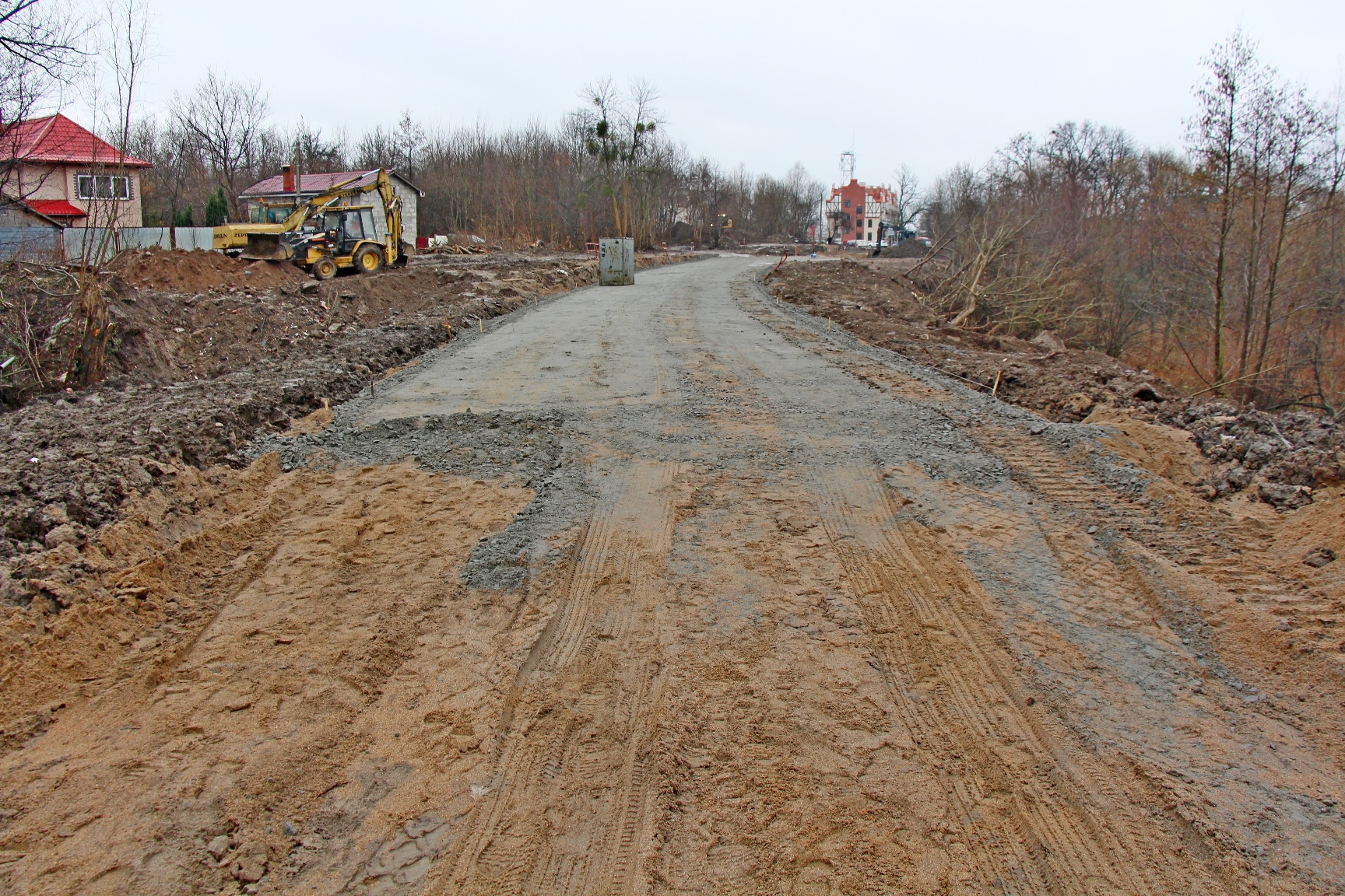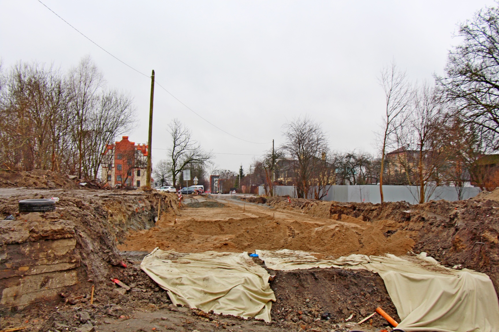 На ул. Дачной дорожники проложили металлическую гофротрубу на месте снесённого аварийного моста, сделали насыпь и уложили щебёночный слой. В створе будущего проезда, который соединит Московский проспект с ул. Юрия Гагарина, уже виден новый дом возле торгового центра на Дачной.