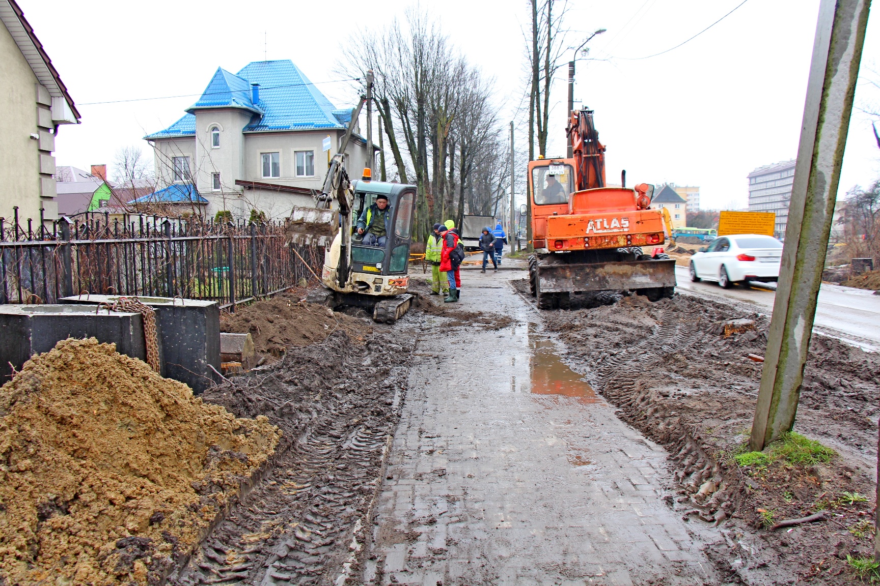На Гагарина готовят очередной участок песчаного и щебёночного слоя под будущую проезжую часть, а также продолжают переносить коммуникации. Сейчас работы идут в районе дома №167. Это ещё на несколько десятков метров ближе к пересечению с улицами Молодой гвардии – Орудийной, где работы по проекту реконструкции улицы Гагарина будут синхронизированы с устройством развязки в рамках очередного этапа строительства Восточной эстакады.