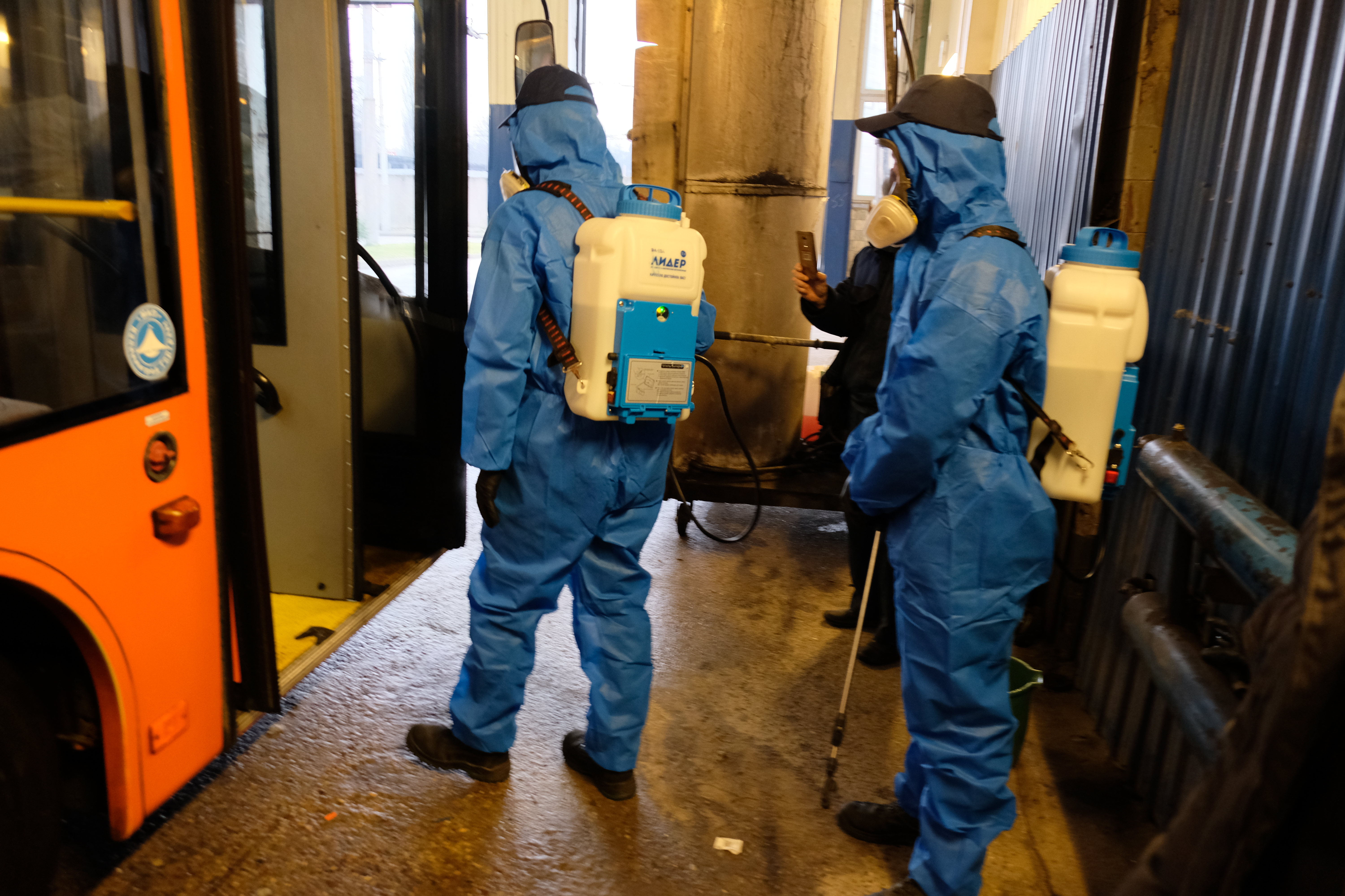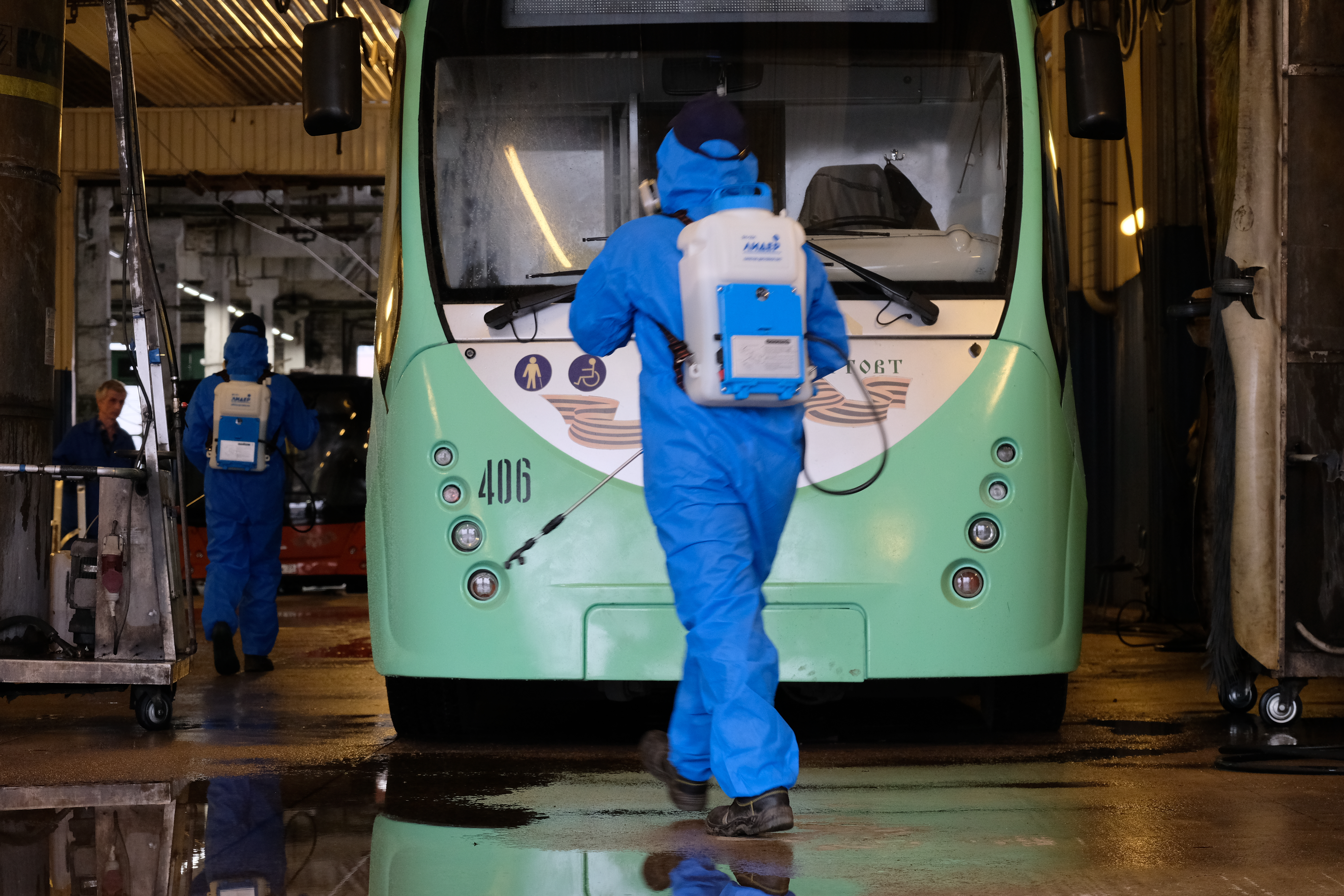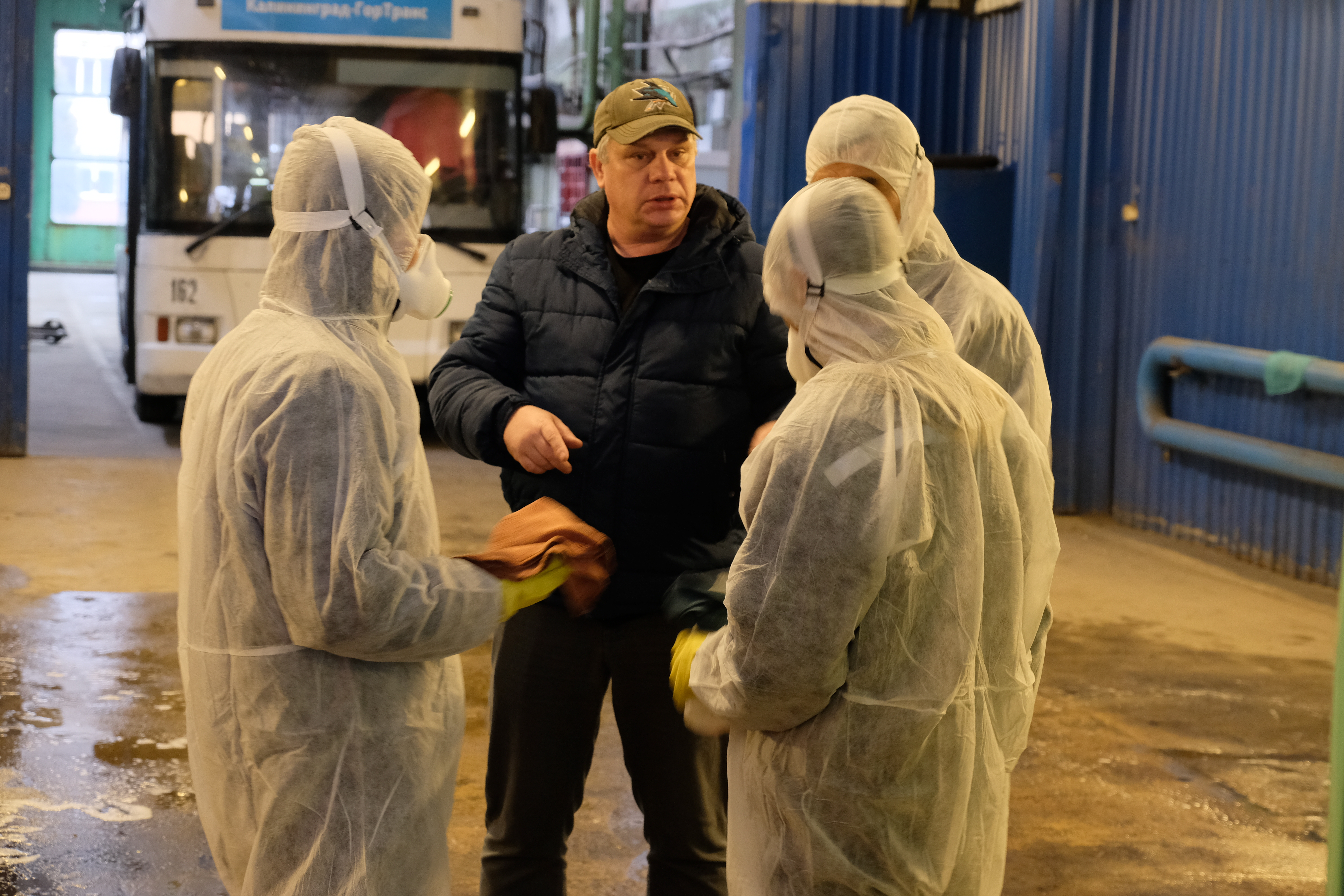 На предприятии «Калининград-ГорТранс» работа не прекращается ни днём, ни ночью. После окончания смены, команда дезинфекторов должна обработать специальным антибактериальным и антивирусным средством салоны всех автобусов, трамваев и троллейбусов. В тот час, когда коронавирус вплотную подступил к границам нашего региона, соответствующее предписание выдал главный санитарный врач страны.
