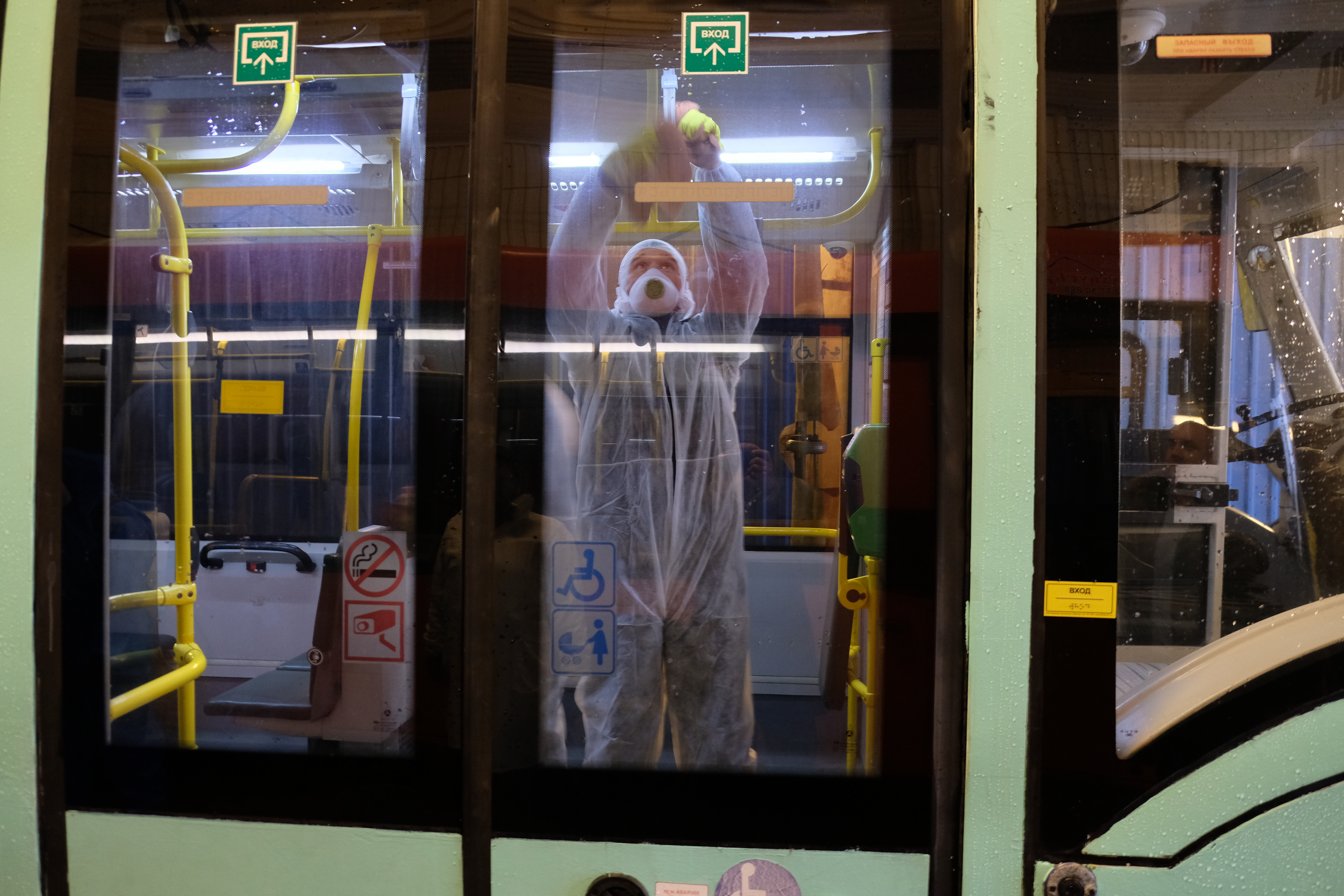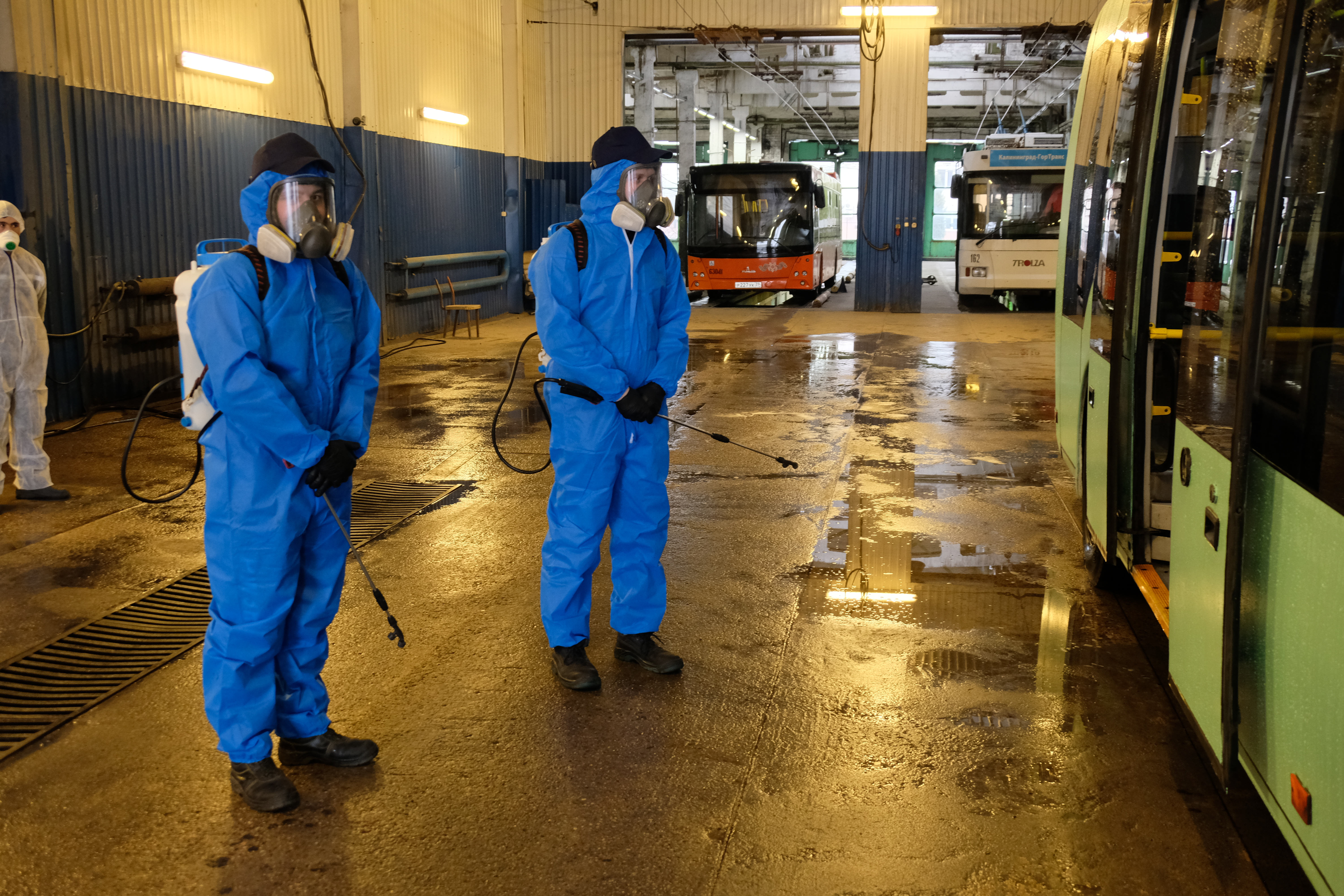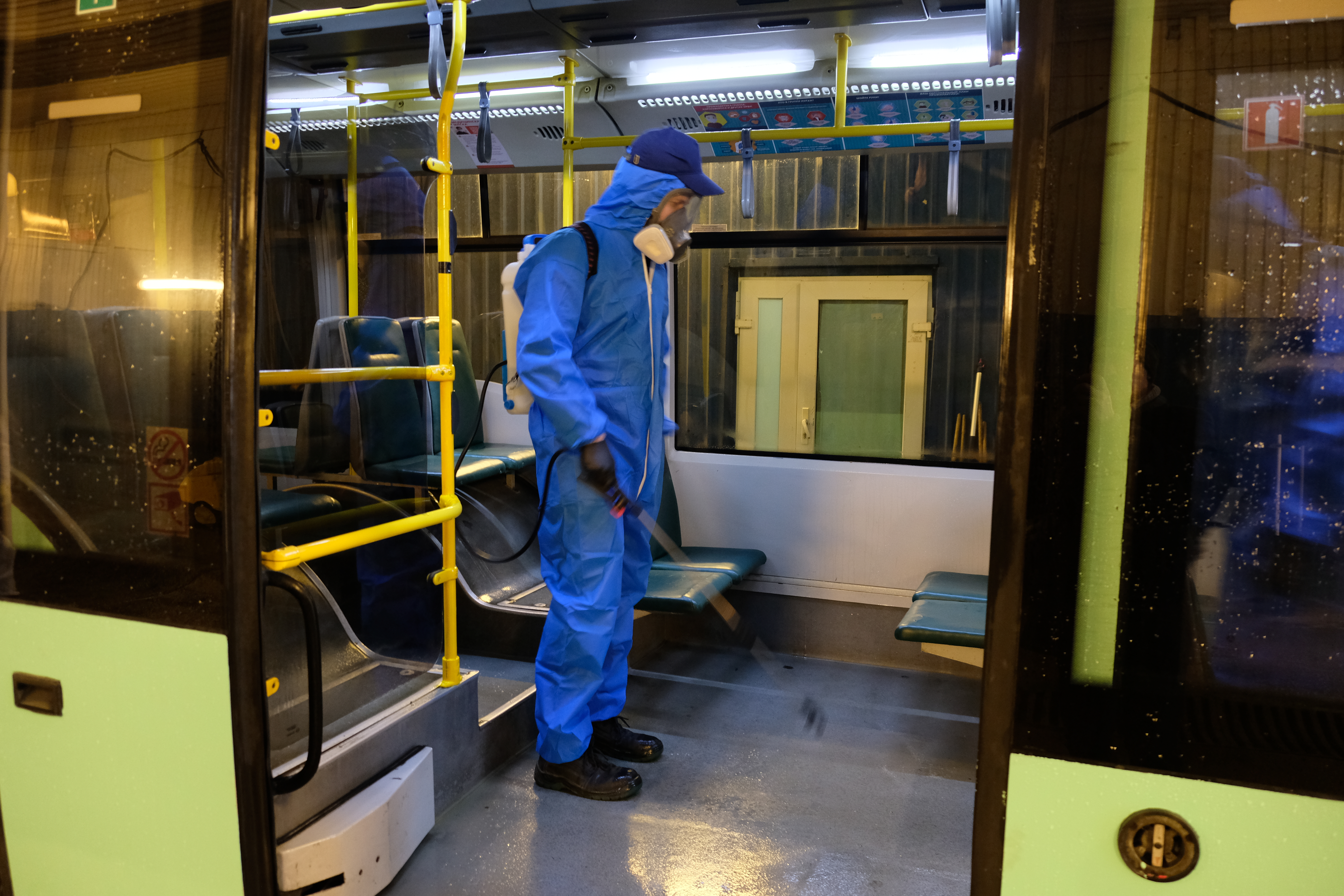 На предприятии «Калининград-ГорТранс» работа не прекращается ни днём, ни ночью. После окончания смены, команда дезинфекторов должна обработать специальным антибактериальным и антивирусным средством салоны всех автобусов, трамваев и троллейбусов. В тот час, когда коронавирус вплотную подступил к границам нашего региона, соответствующее предписание выдал главный санитарный врач страны.