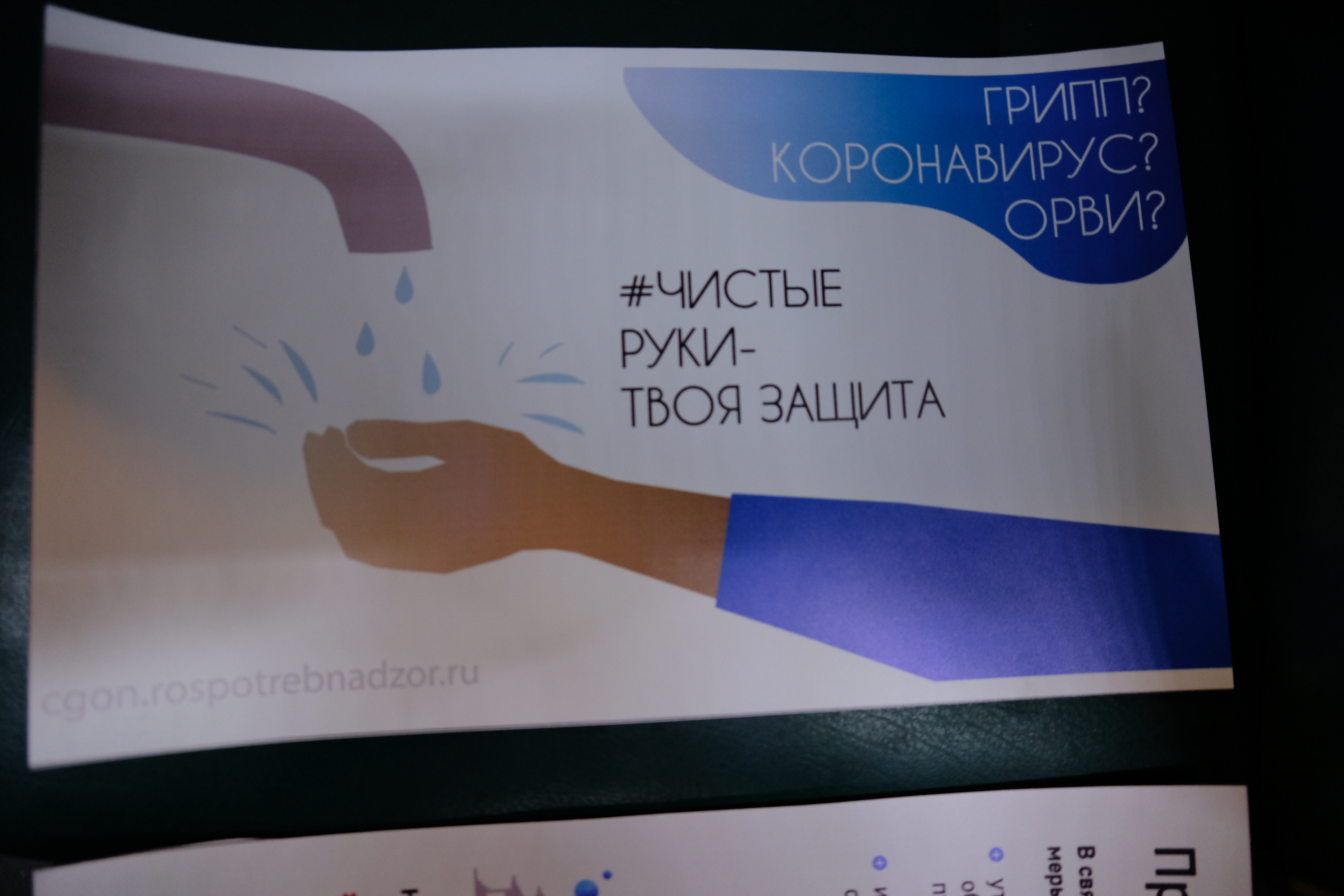 Помимо стерильности в салоне на МКП «Калининград-ГорТранс» заботятся и о «чистоте помыслов» пассажиров. Просветительская деятельность - немаловажная часть профилактики. Чтобы горожане и горожанки не питались слухами в отношении новой заразы, в салонах расклеивают плакаты, доходчиво объясняющие людям о том, что такое коронавирус, где он живёт и чего он боится.
