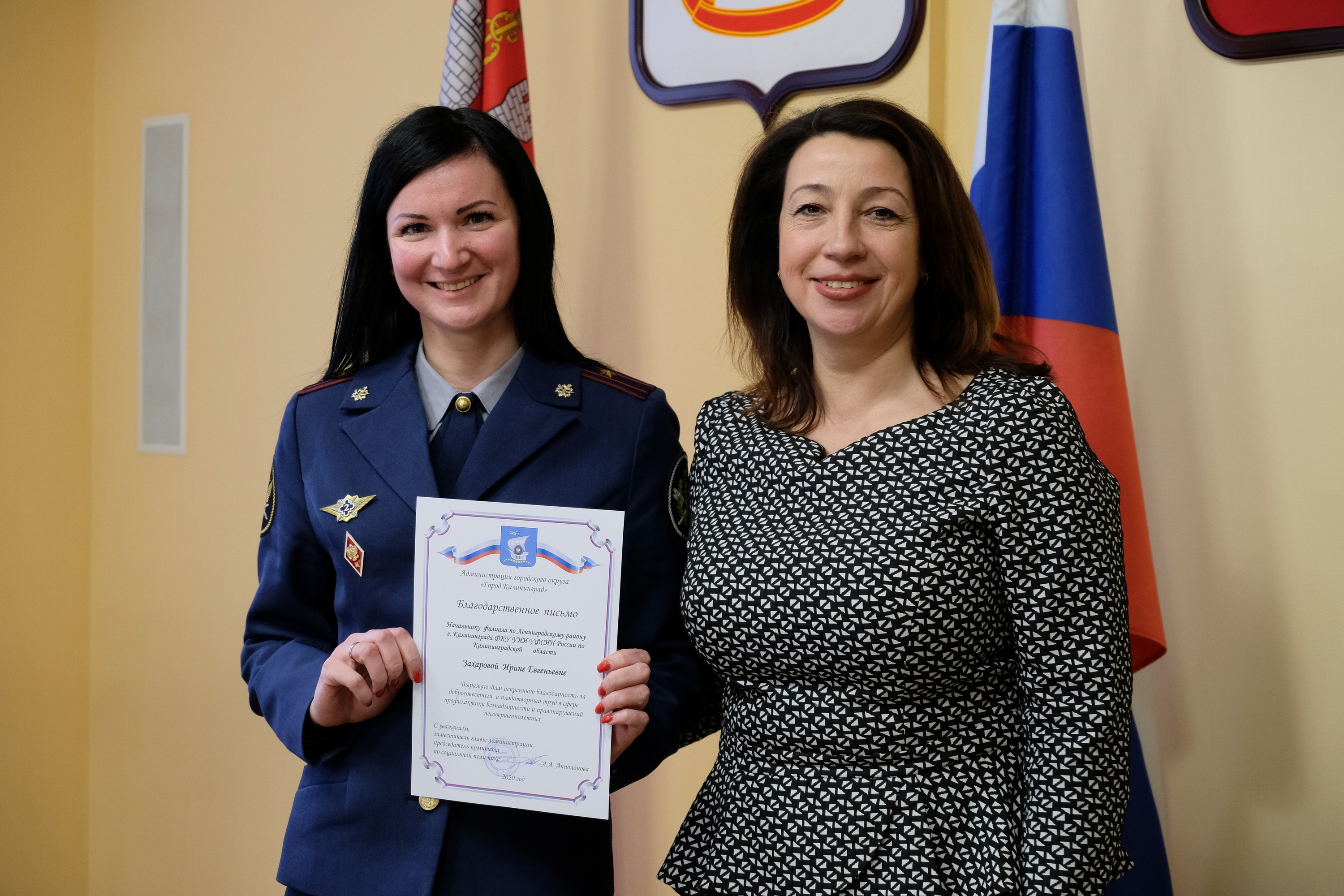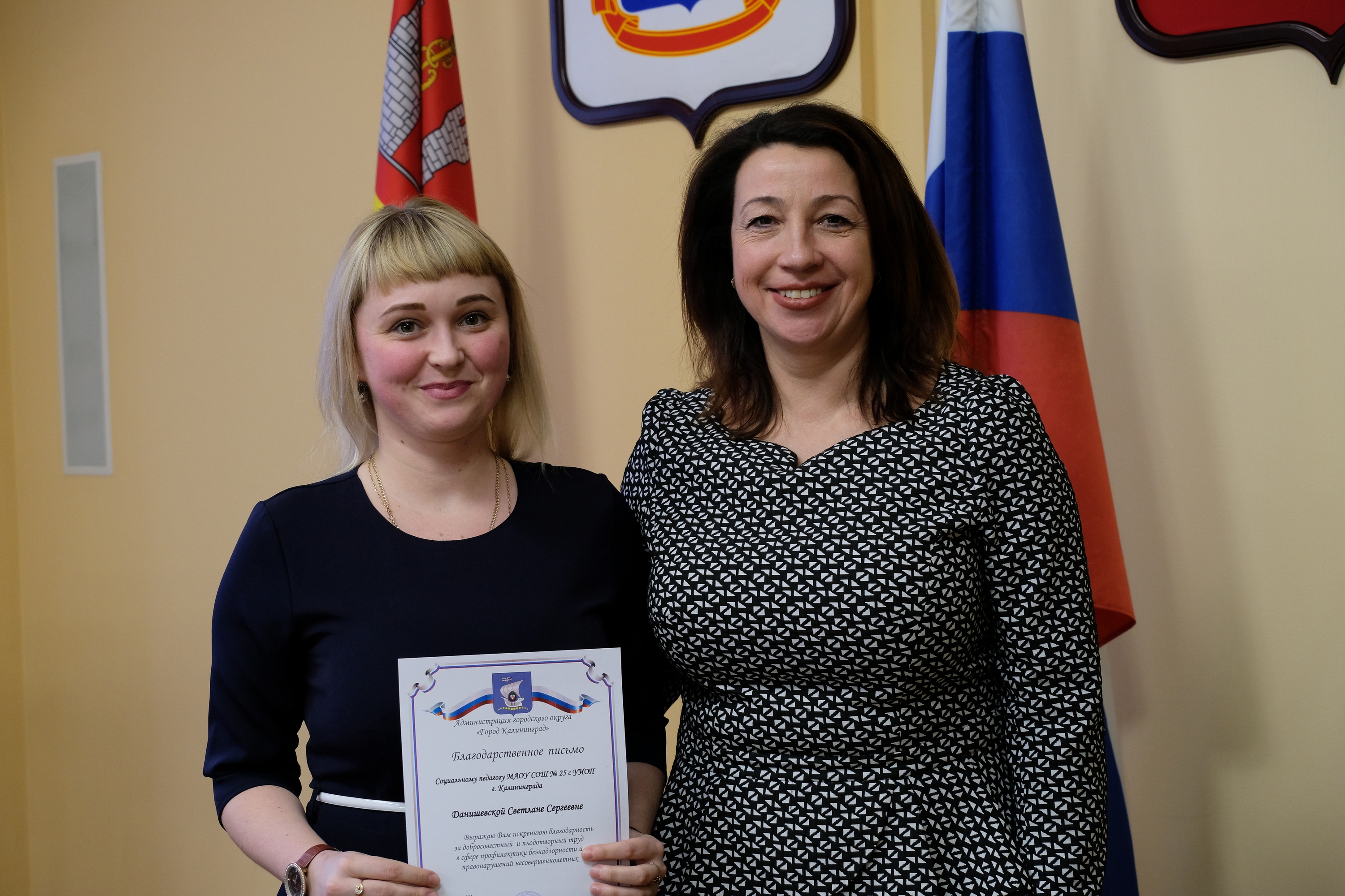 В завершении Анна Апполонова от всей души поблагодарила всех коллег за сотрудничество и наградила благодарственными письмами за успешное взаимодействие представителей органов и учреждений системы профилактики безнадзорности и правонарушений несовершеннолетних Калининграда.