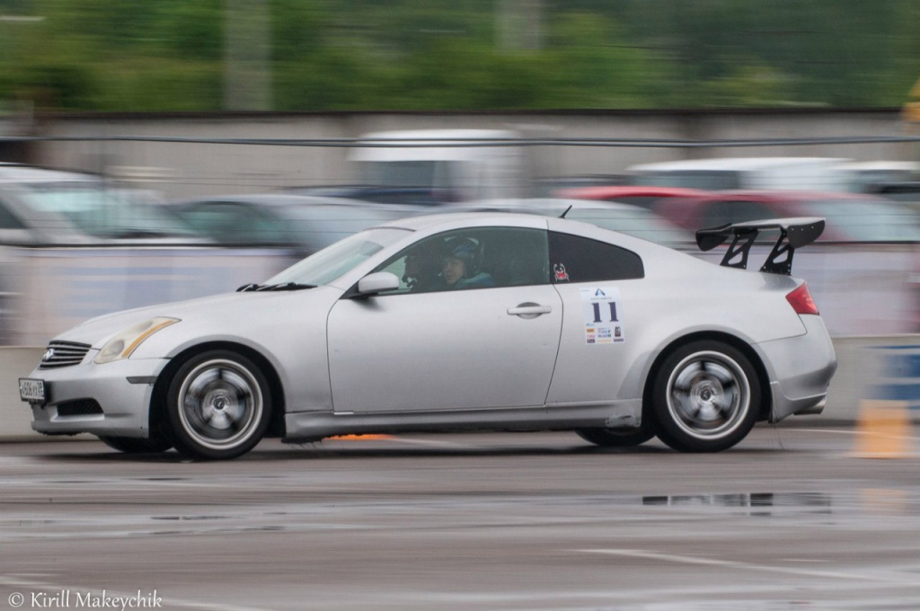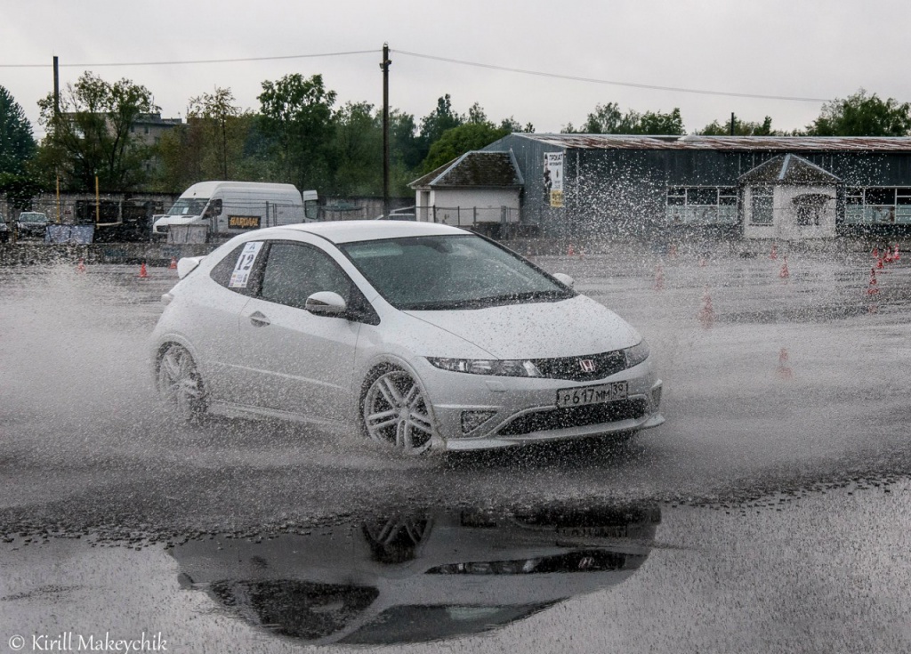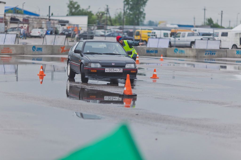Участники соревновались в четырех классах – «2WD» моноприводные автомобили, «4WD» полный привод, «Абсолют» - открытый класс и «Леди» -женский зачет. Для гонщиков приготовили сложные испытания на треке: две «шпильки» - разворот автомобиля на 180 градусов во время движения, и «лосиный тест» - объезд конусов на скорости. Трасса усложнилась за счет погодных условий – дождь не прекращался, лужи препятствовали спокойному прохождению поворотов.